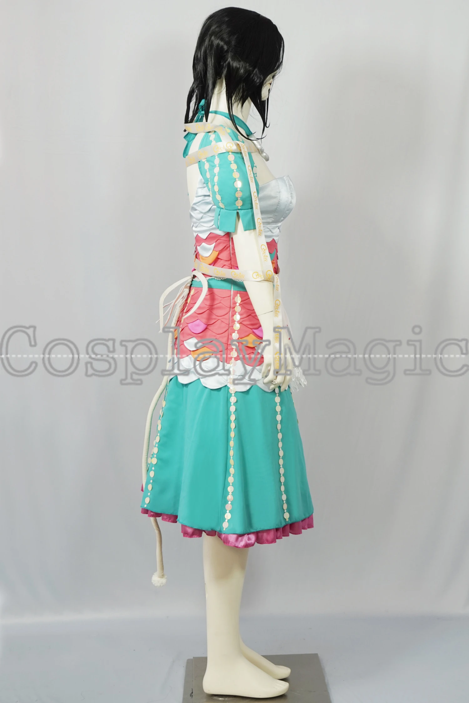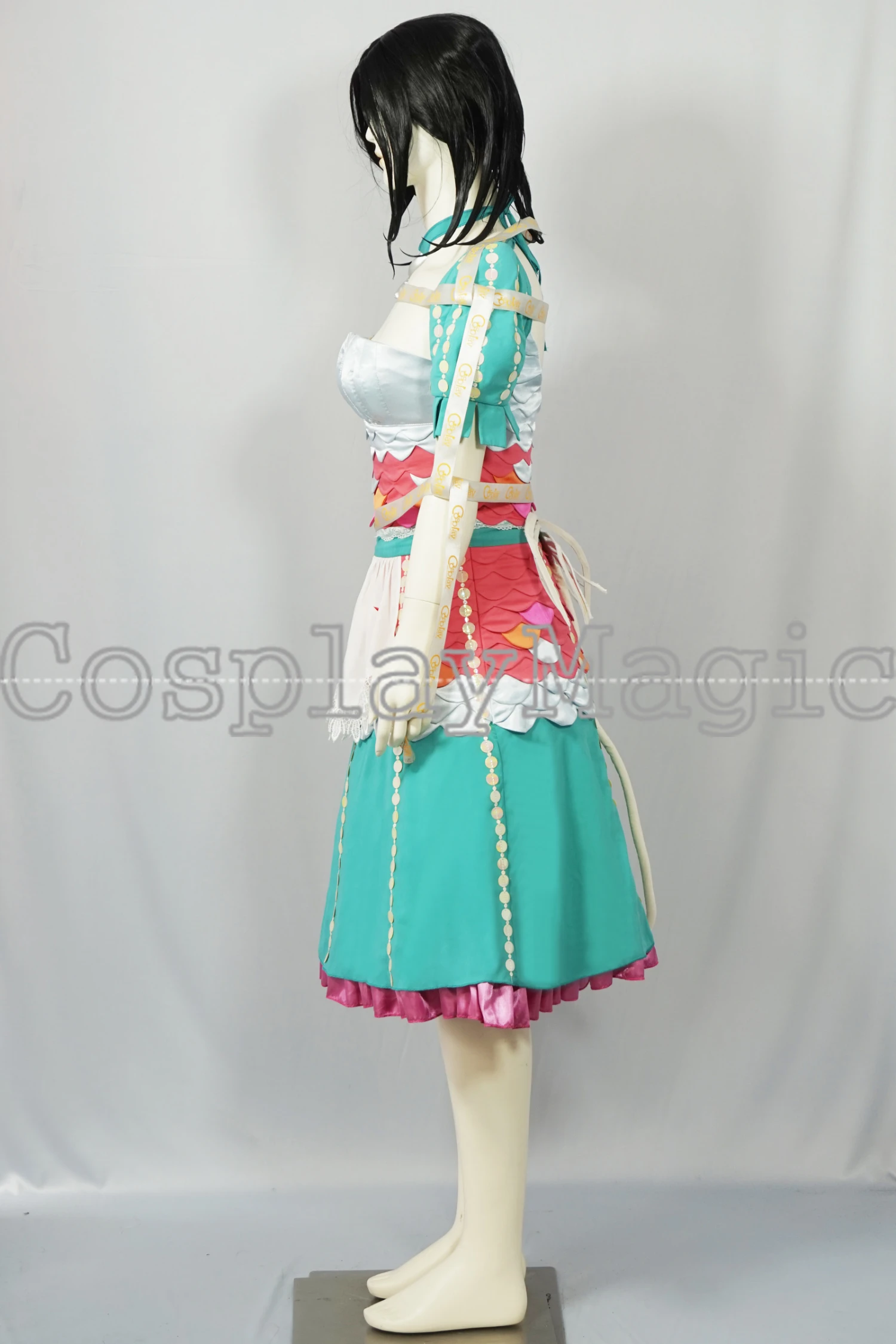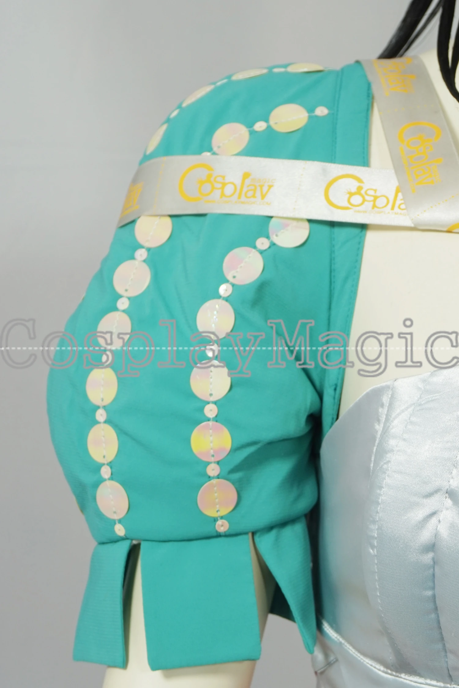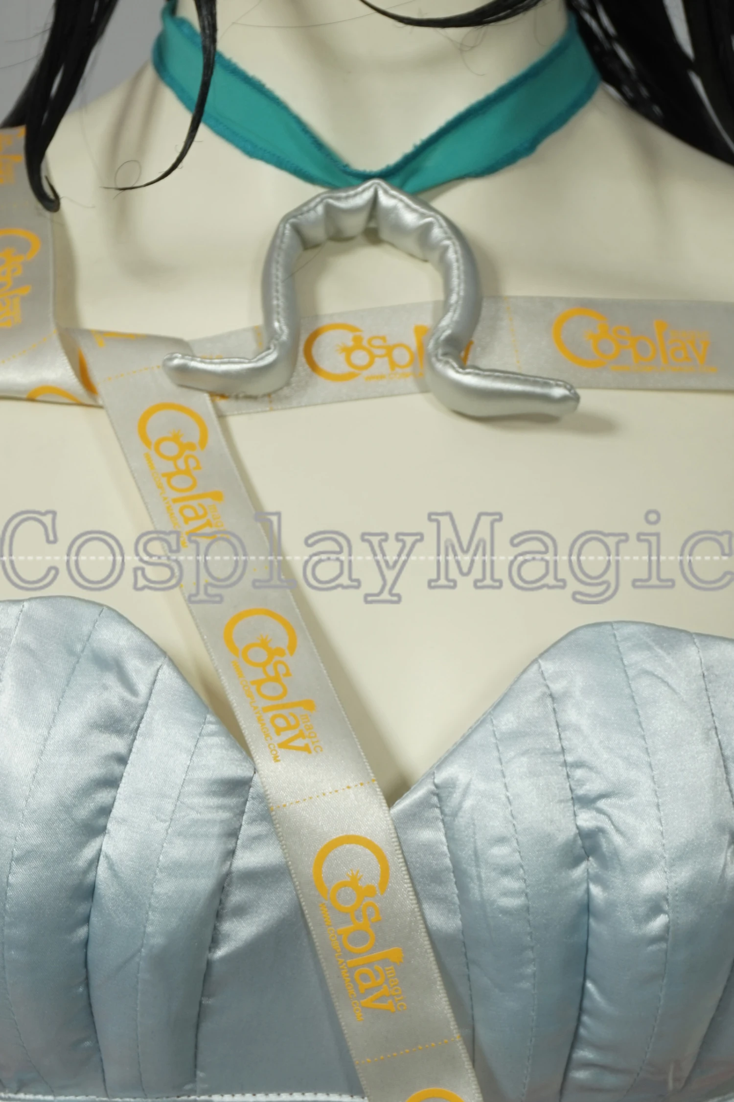 - Puff sleeve dress with sequins based on bioluminescent deep sea creatures, the bust shaped like seashells, the pink bodice based on corals, the apron embroidered with astronomical signs of Luna and Neptune, scorpions on the back