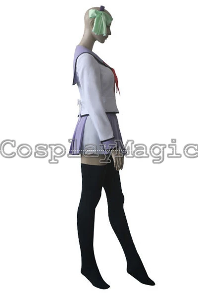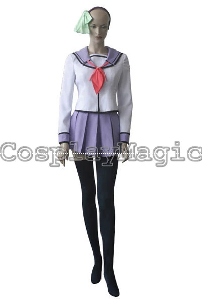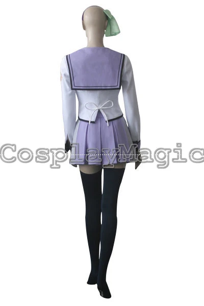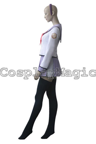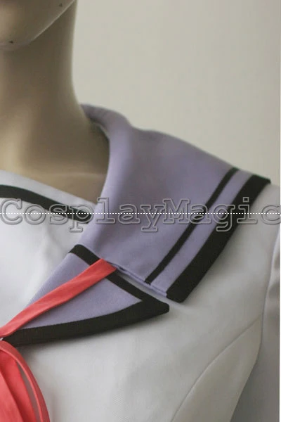 - White sailor uniform with pale purple collar and cuffs, black edges