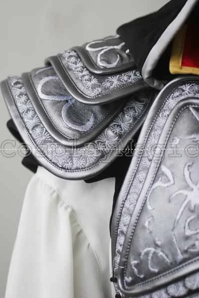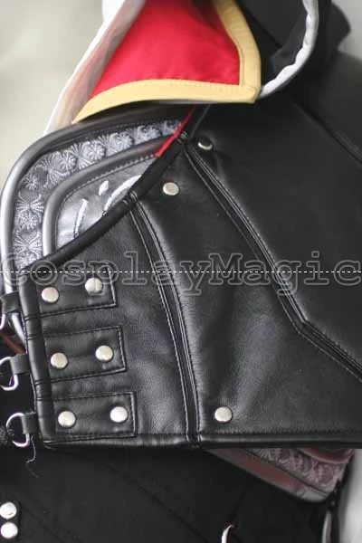 - Black cape attached to faux leather spaulder