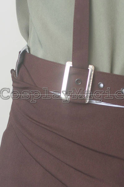 - Dark brown sash around the waist covering the hip