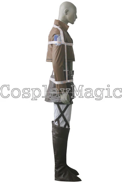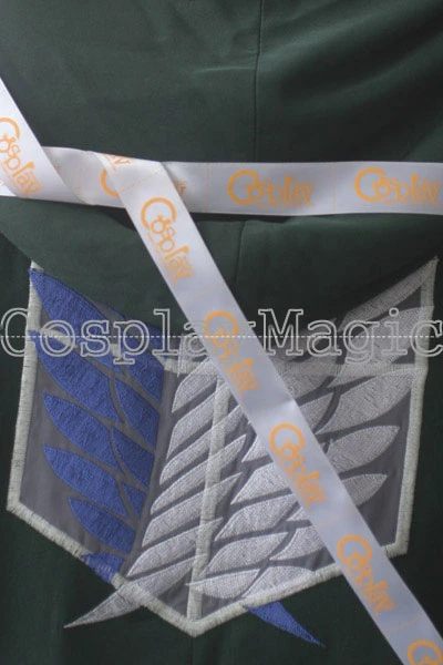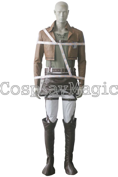 - Short, light-brown, faux leather jacket with the badge of the Survey Corps on both shoulders, on the front left pocket, and on the back