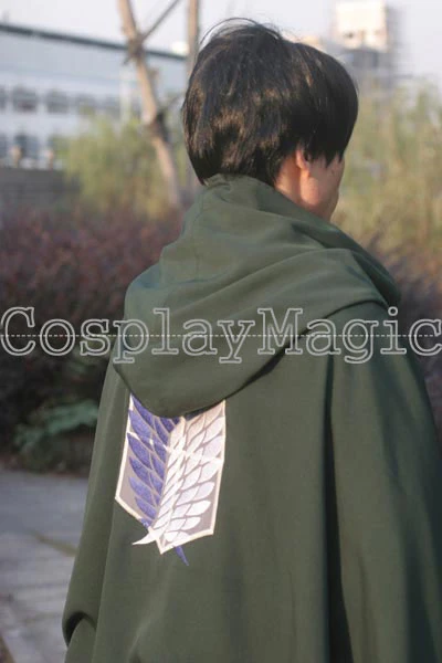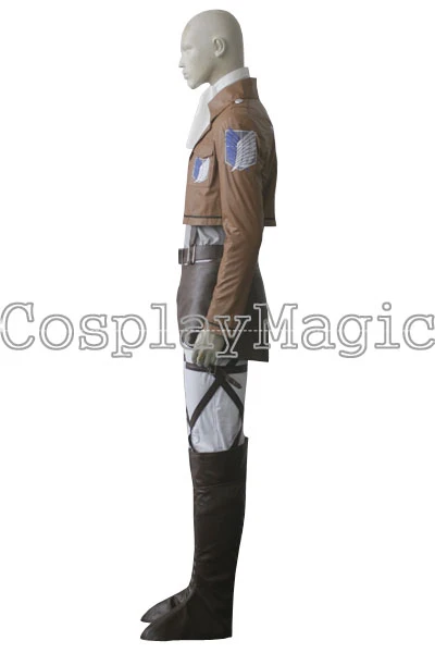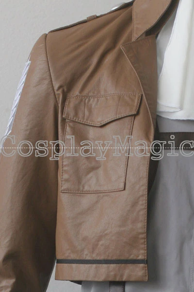 - Short, light-brown, faux leather jacket with the badge of the Survey Corps on both shoulders, on the front left pocket, and on the back