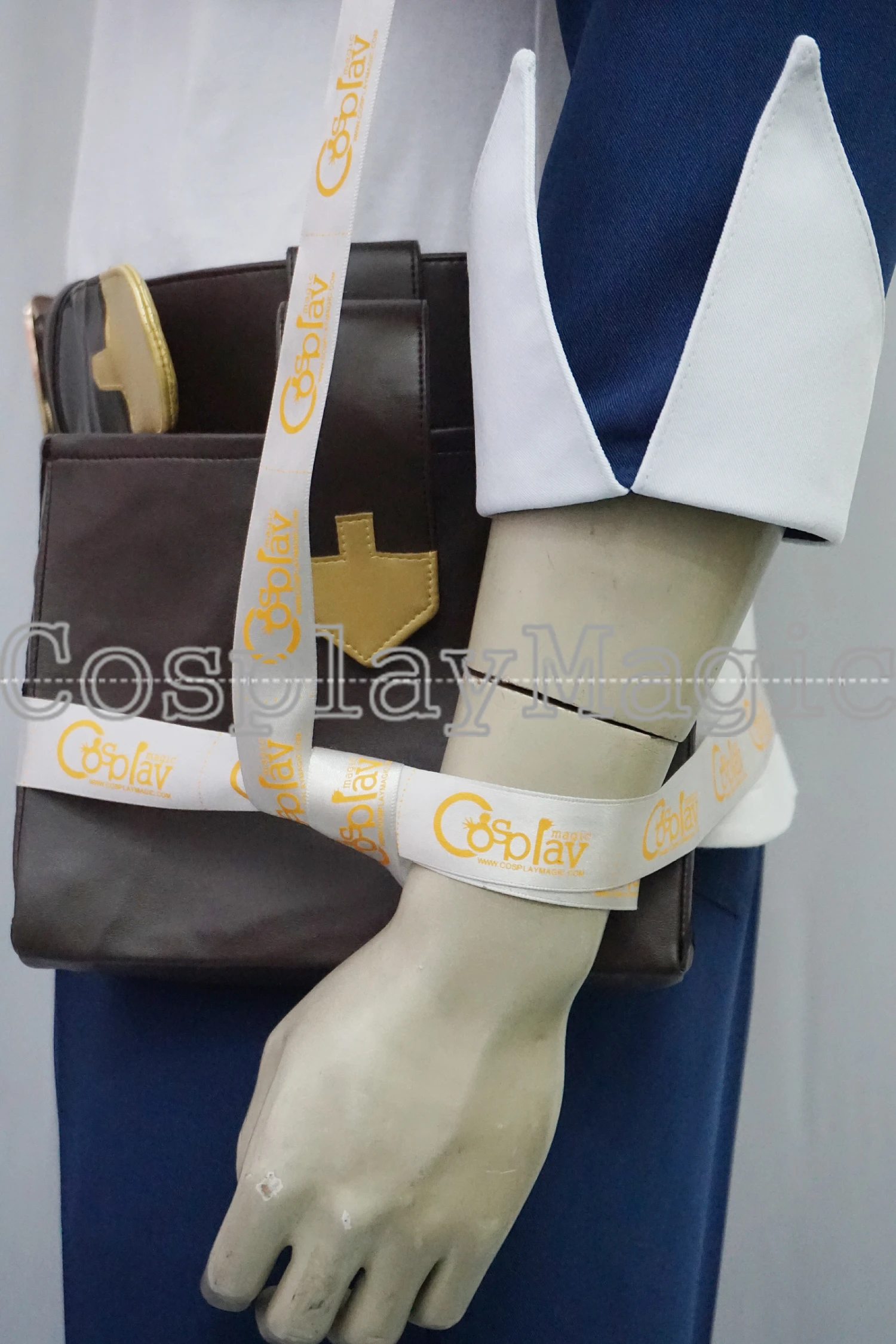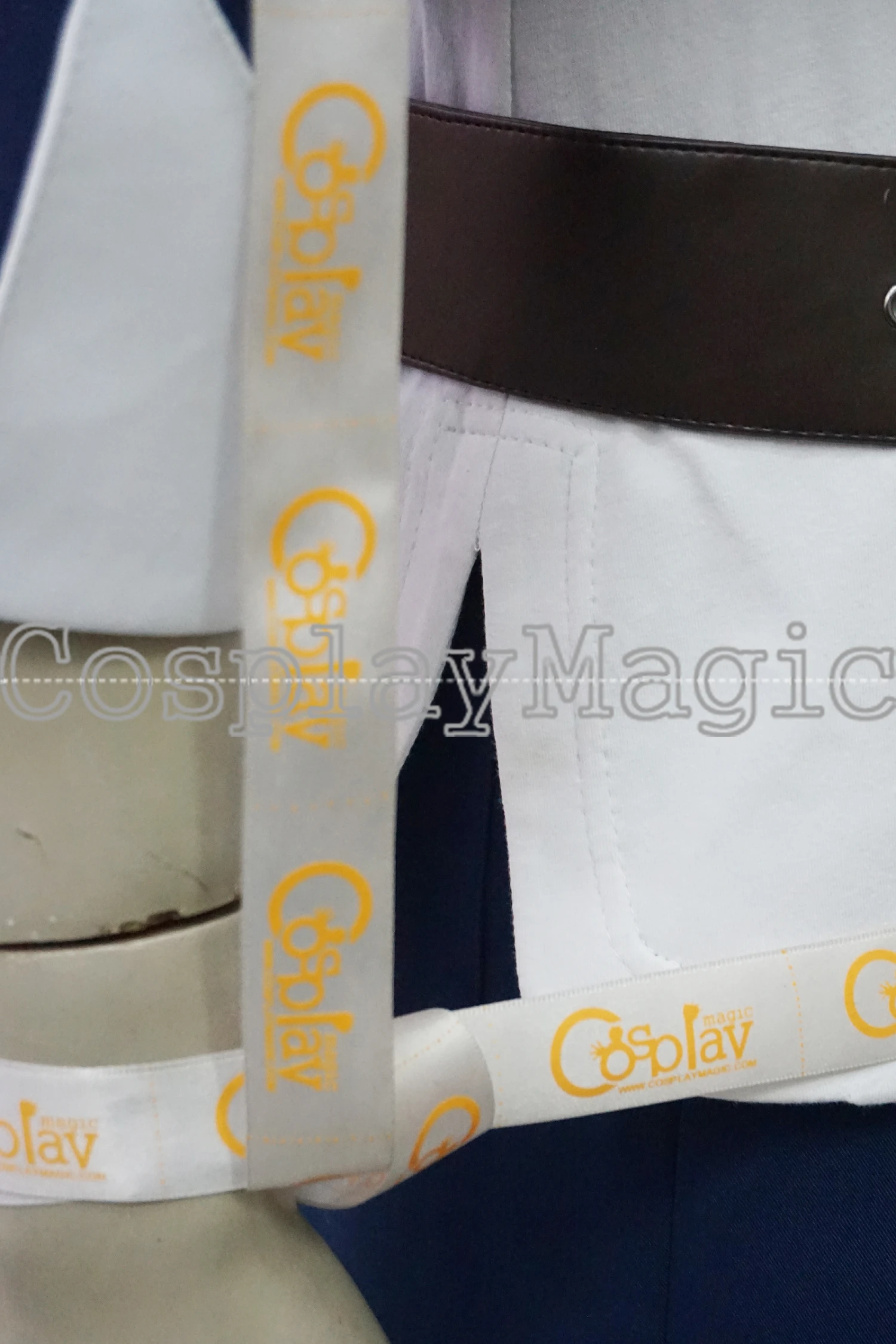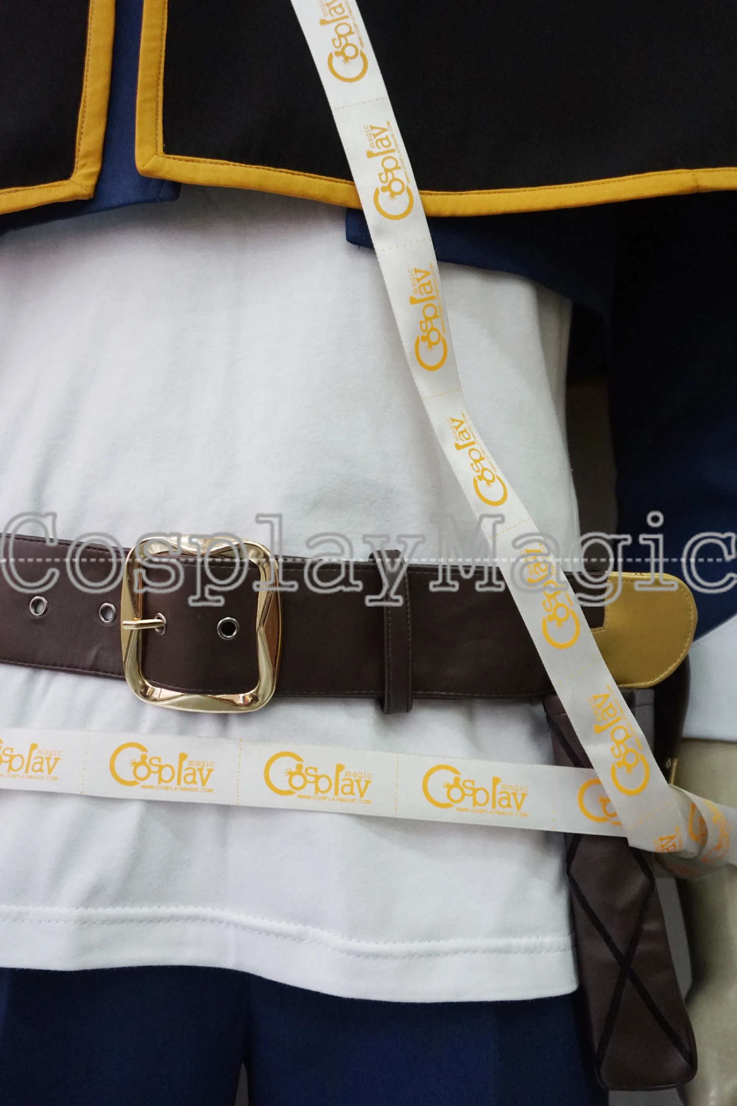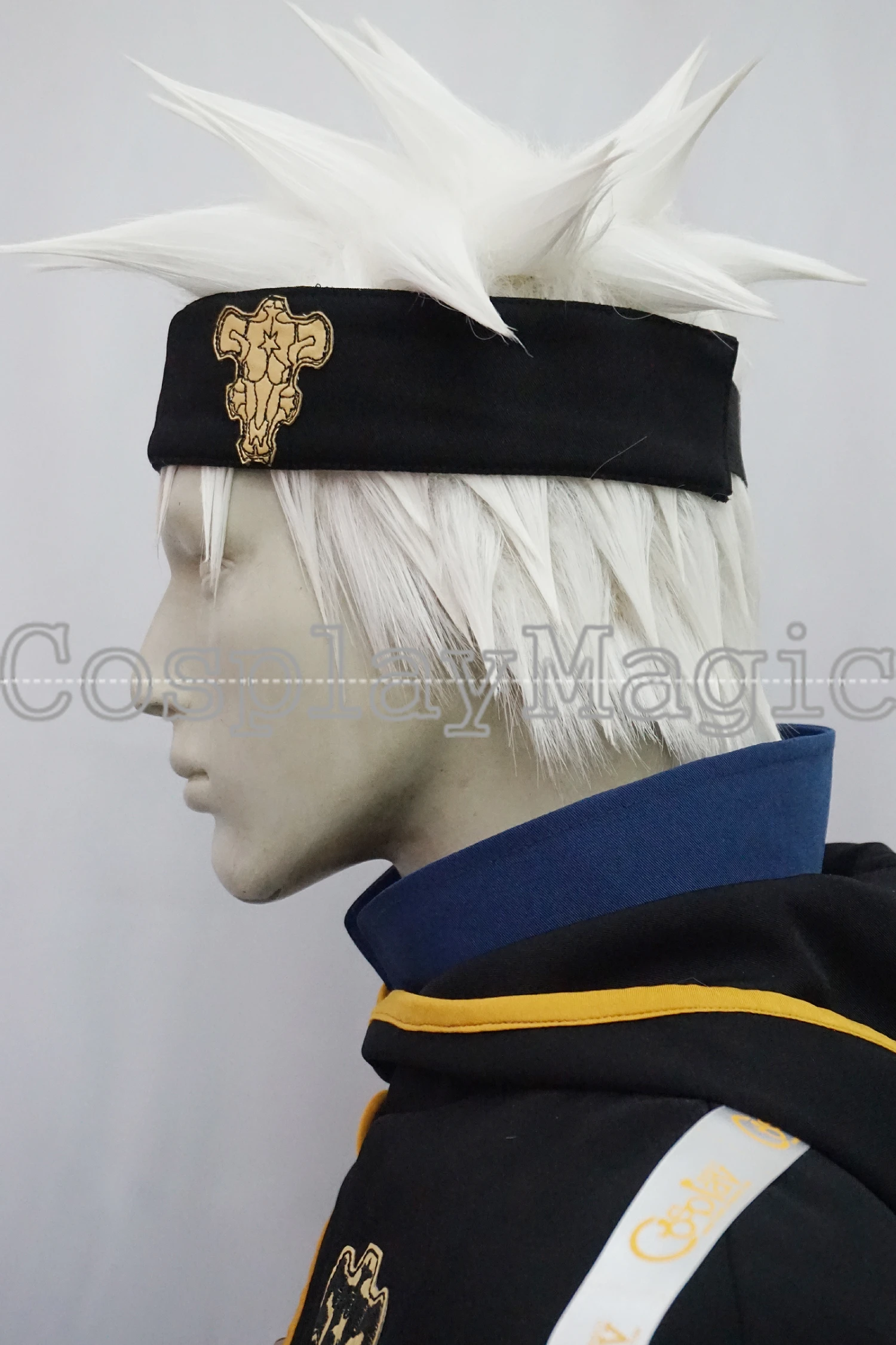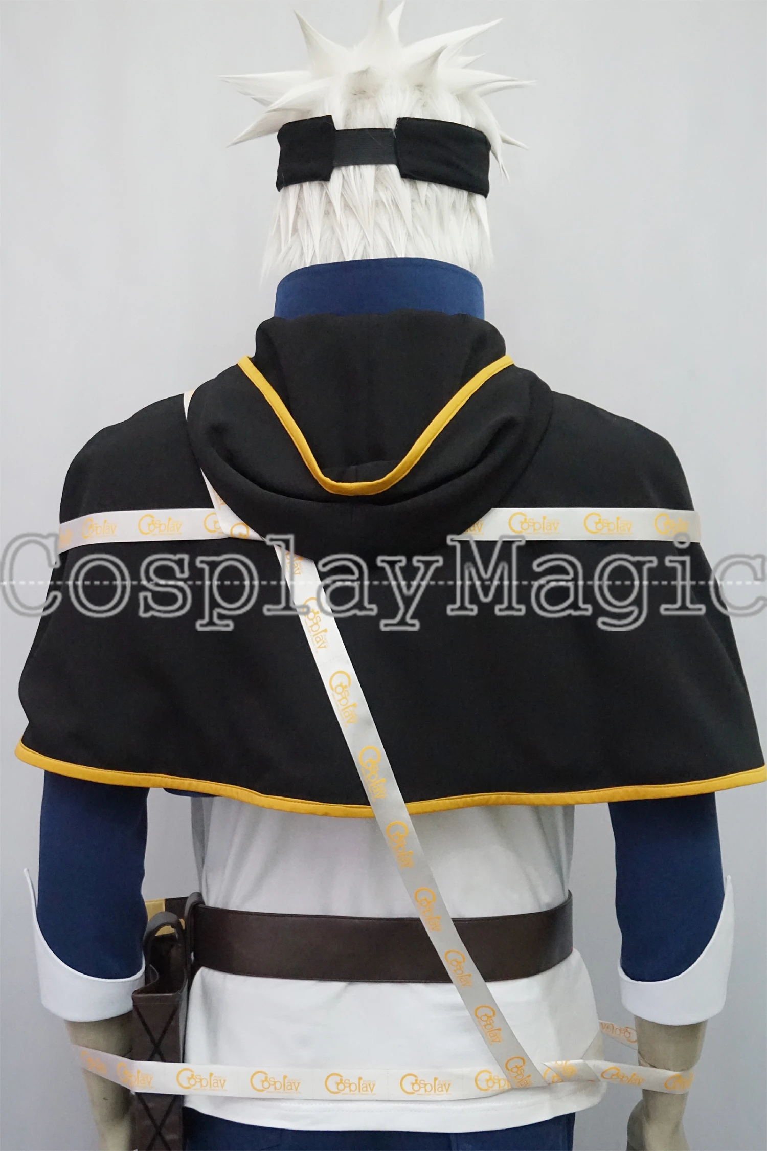 Package include: white shirt, blue jacket with hoodie, pants, black shirt cape, headband, belt, pouch.