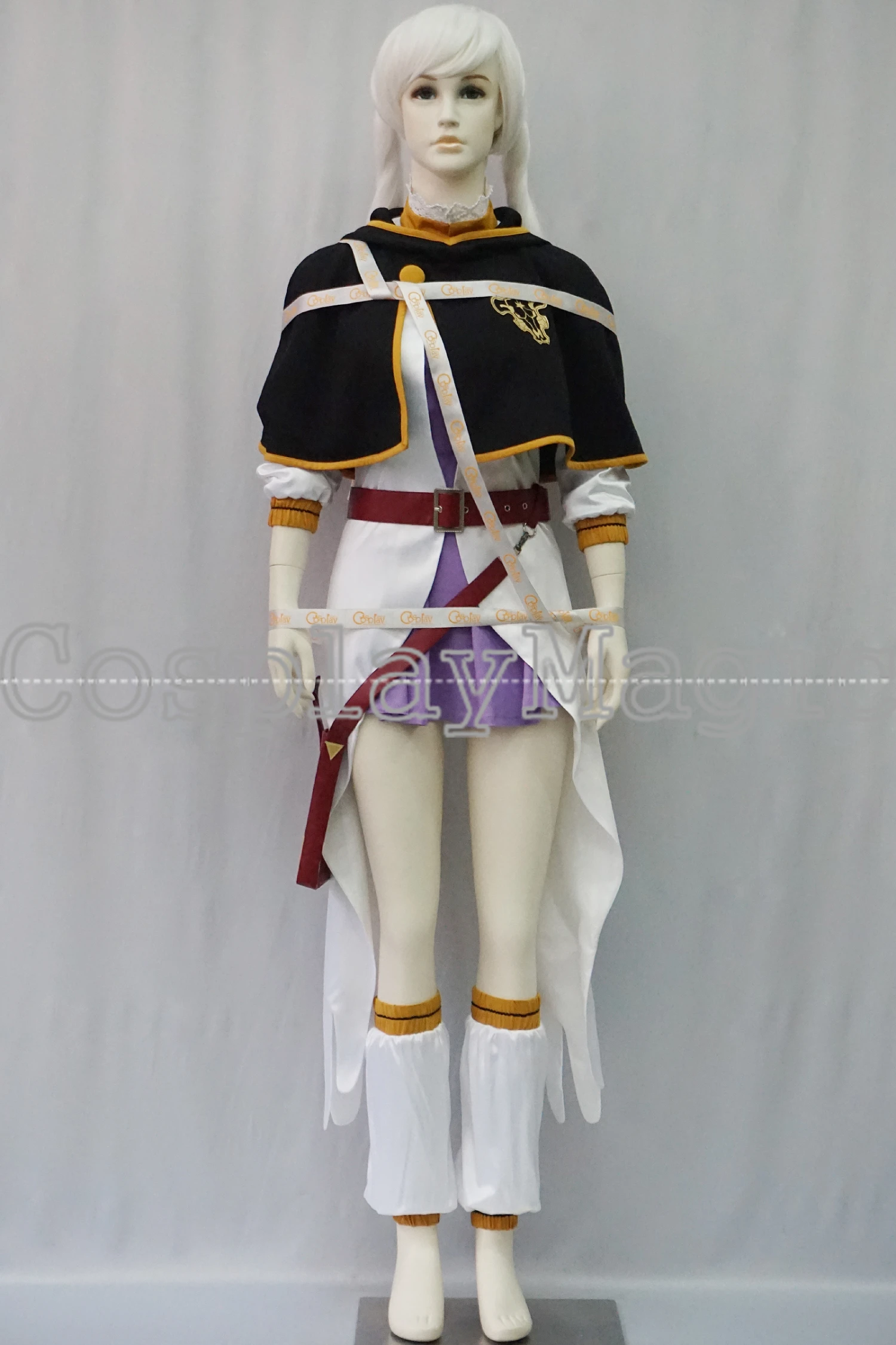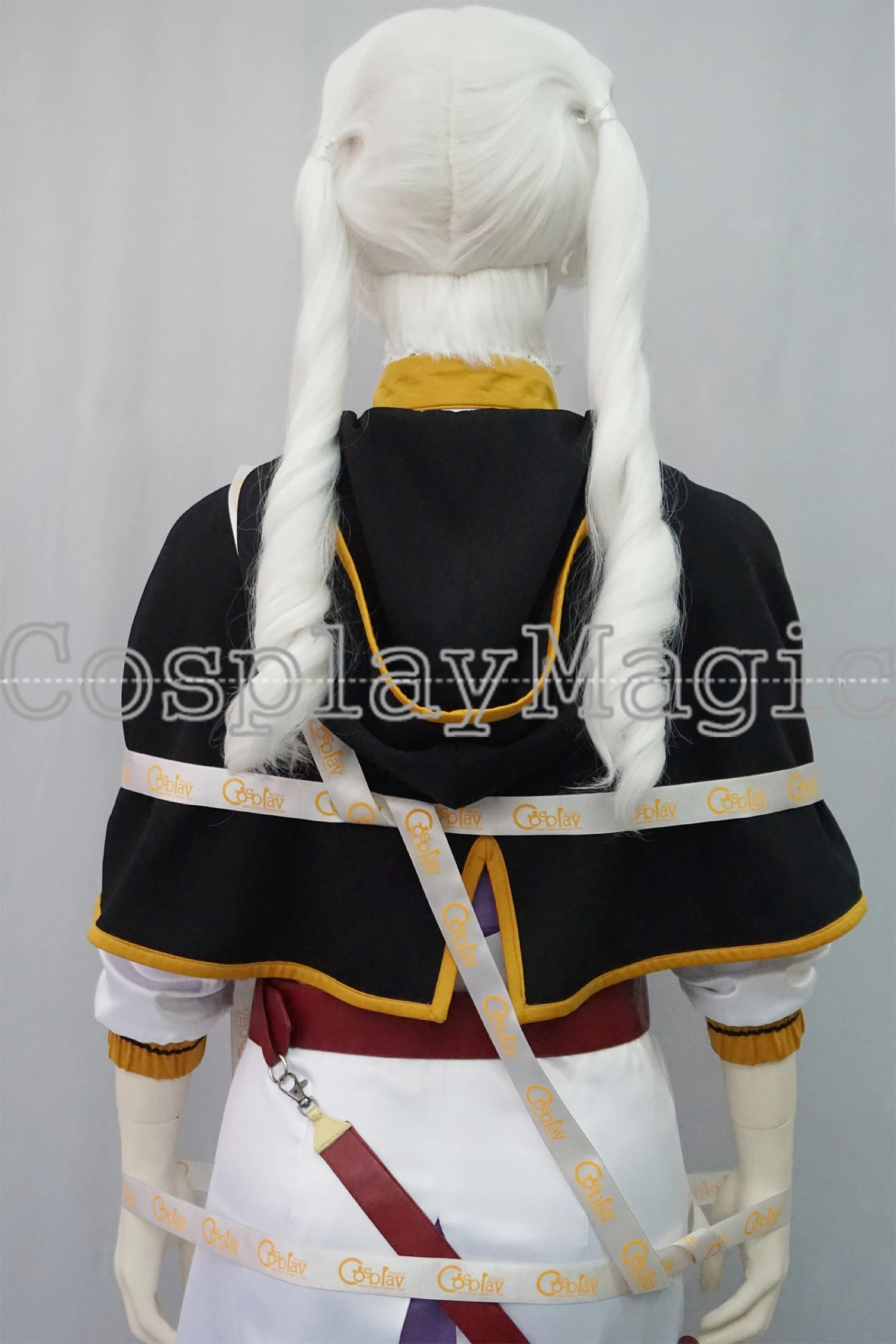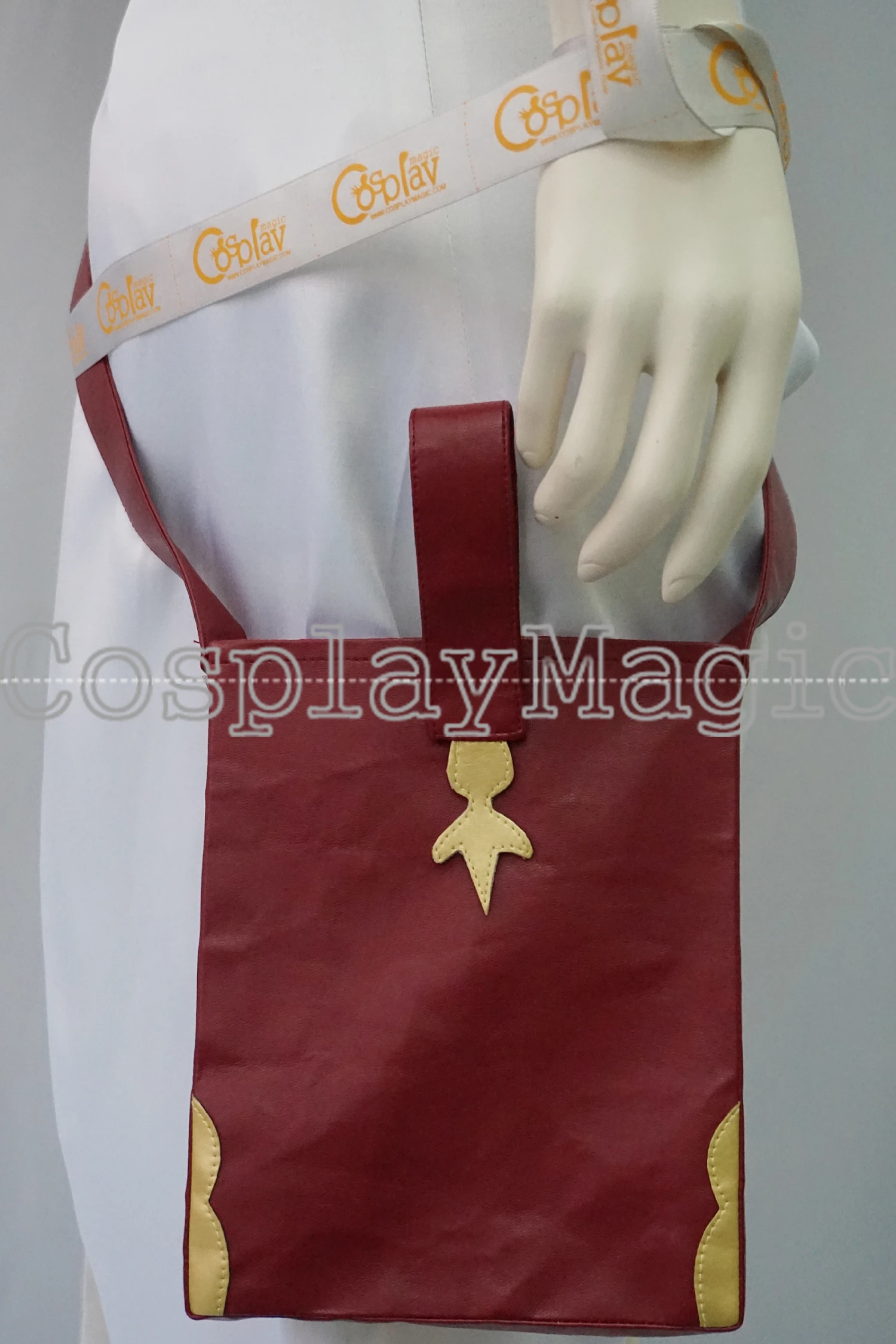 Package include: Purple dress, white coat with hoodie, red belt, red leather bag, leg cover.