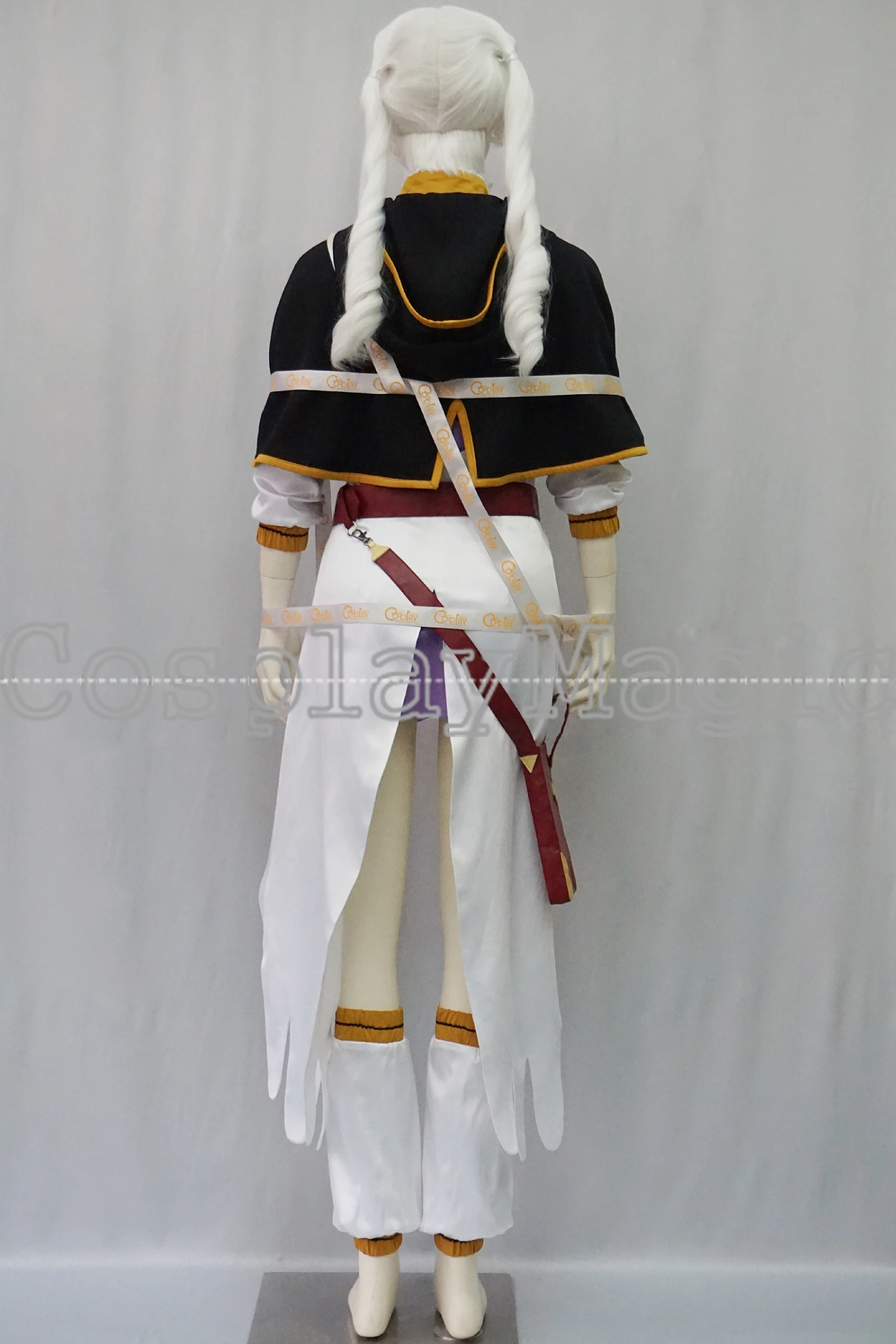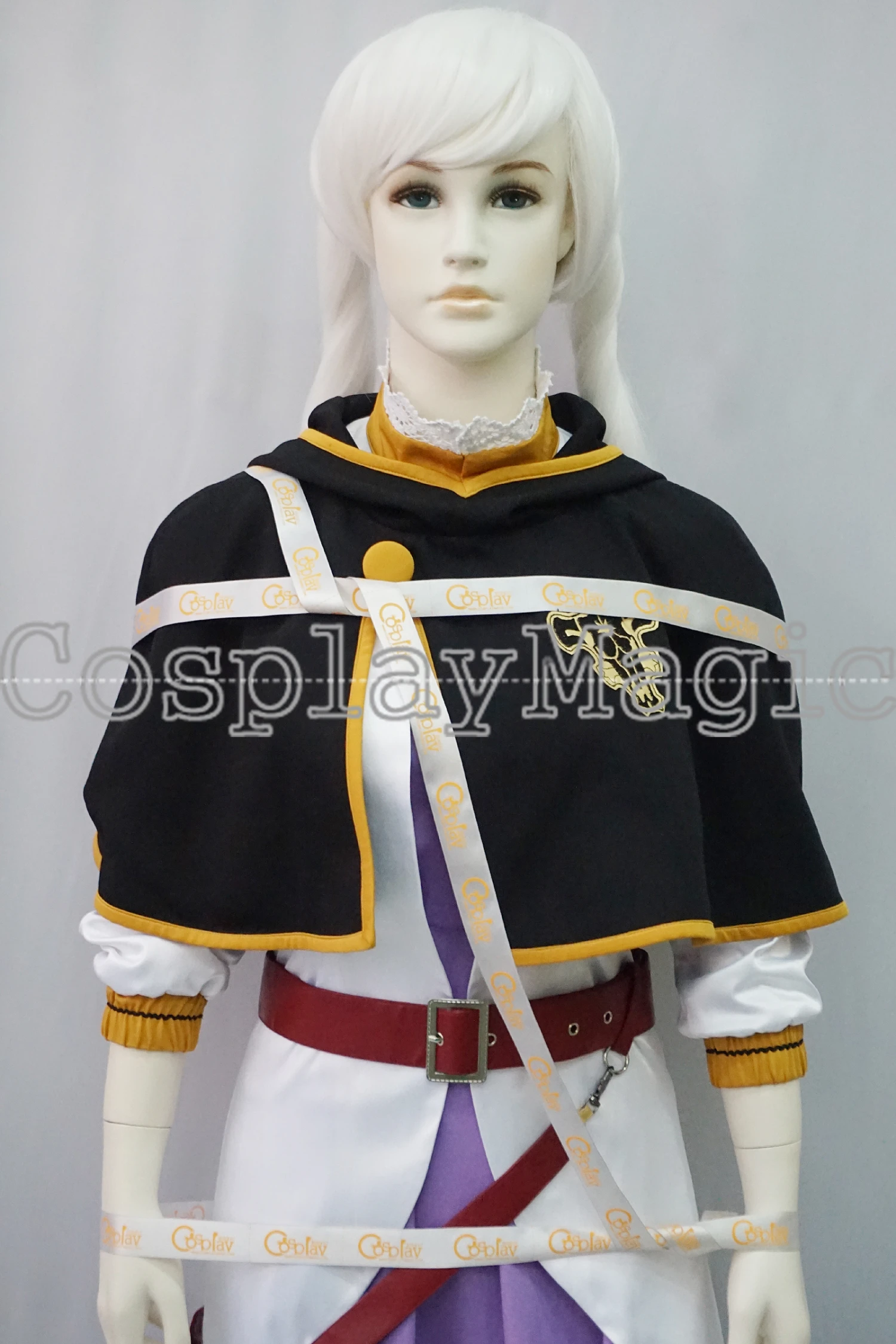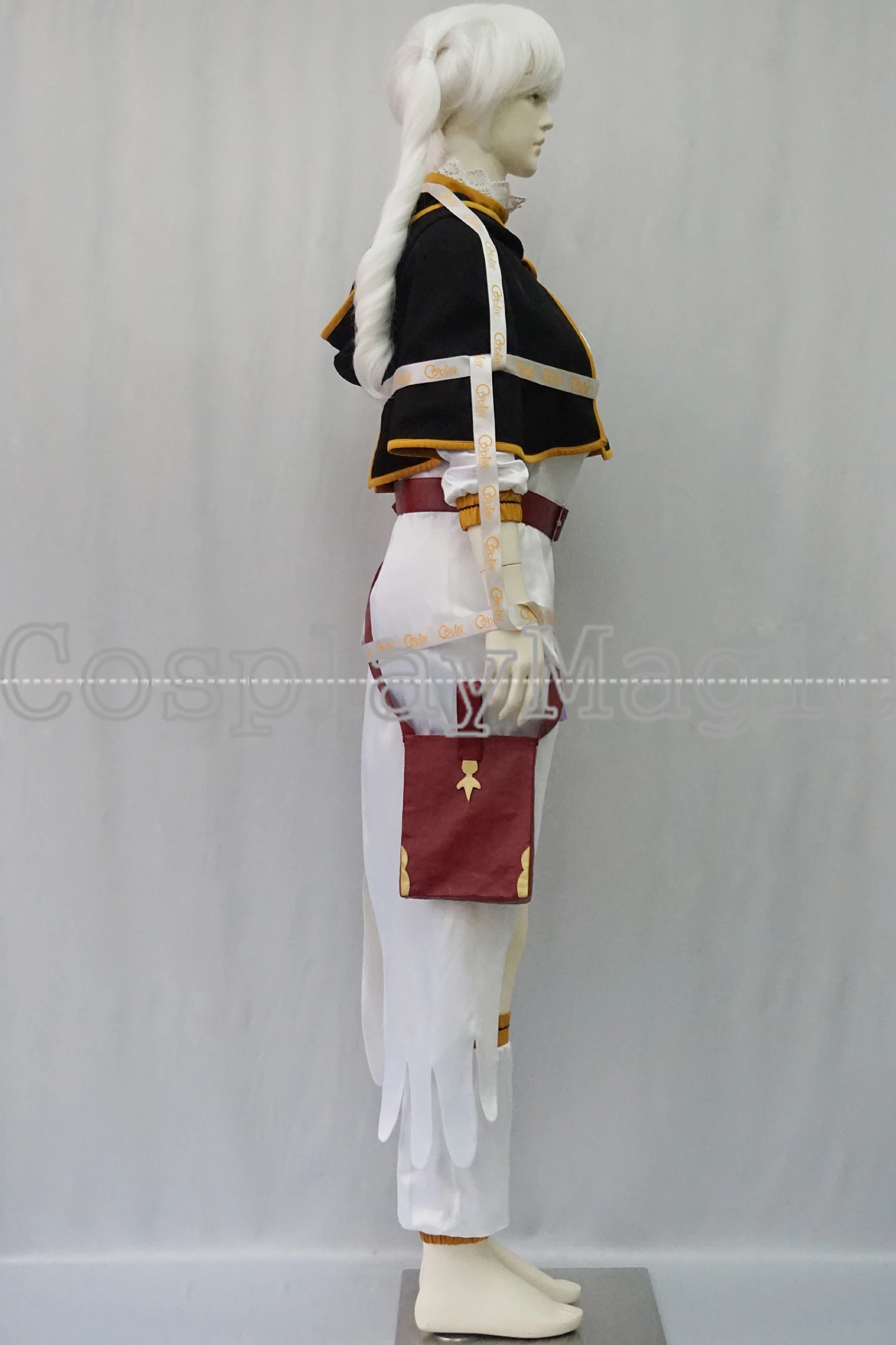 Package include: Purple dress, white coat with hoodie, red belt, red leather bag, leg cover.