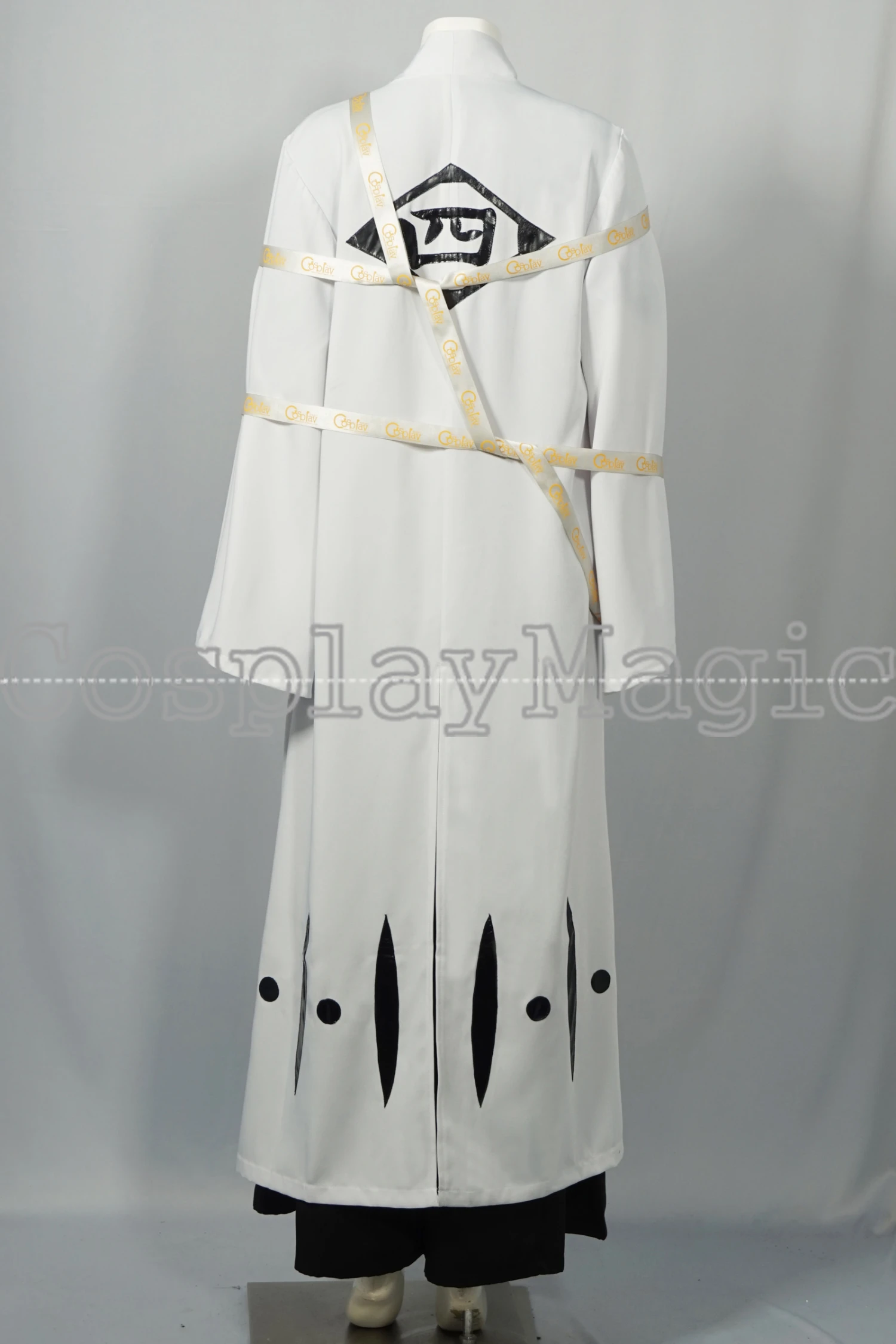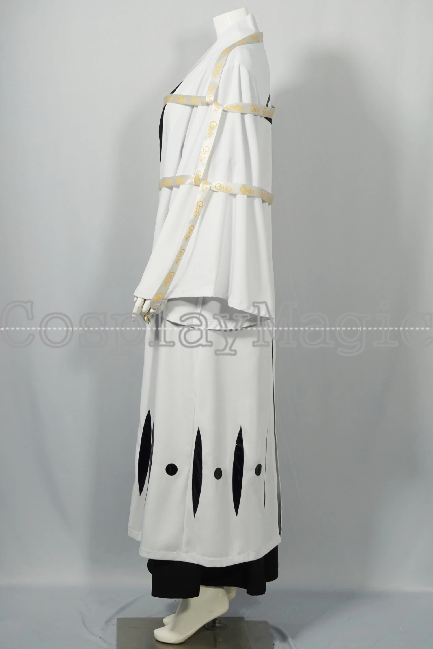 - White captain’s haori with 4th Division emblem on the back and alternating pattern along the bottom