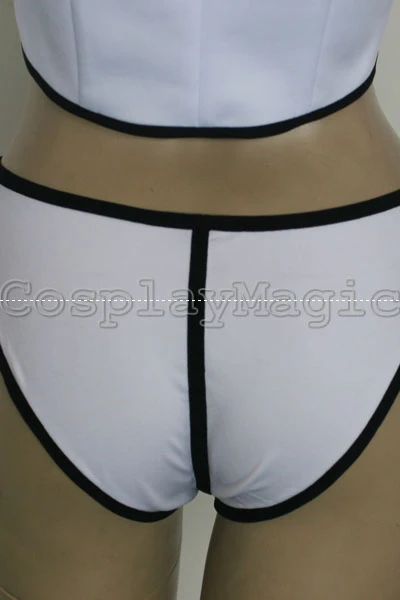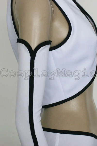 - High-collared white vest with black edges