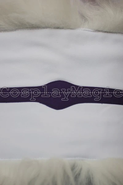 - Matched white sash with faux fur trim