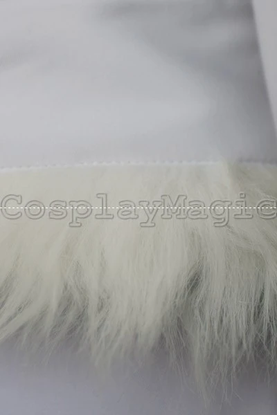 - Long white robe with white faux fur collar