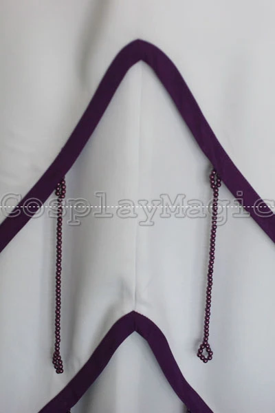 - White dress-like garment with dark purple strands