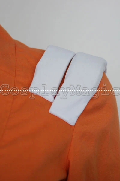 - Orange over-shirt with two white straps on each shoulder