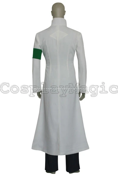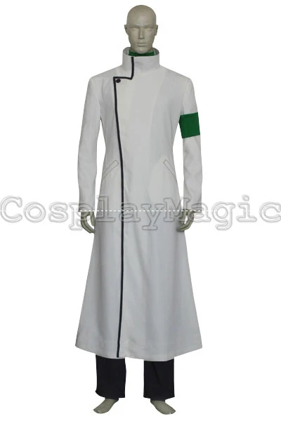 - White coat with black edges, green brassard