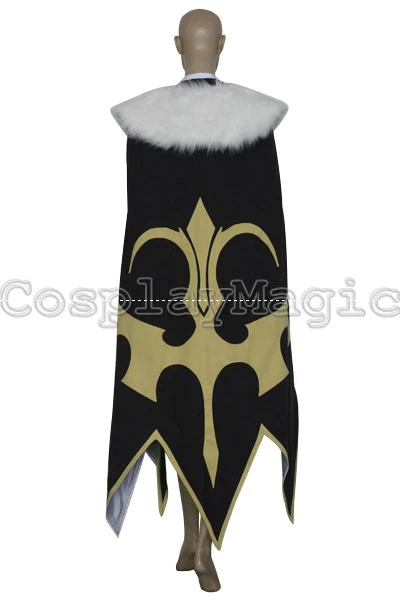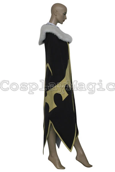 - Black cloak with yellow insignia and edges, white faux fur collar