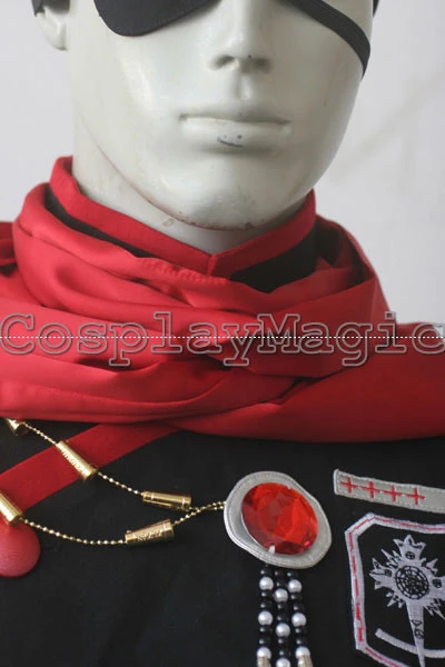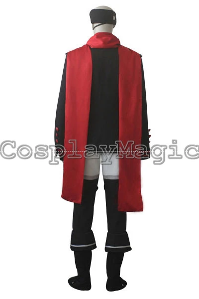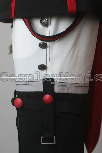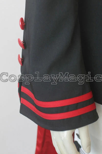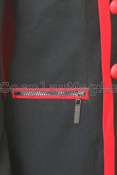 - Black jacket with red edges and buttons