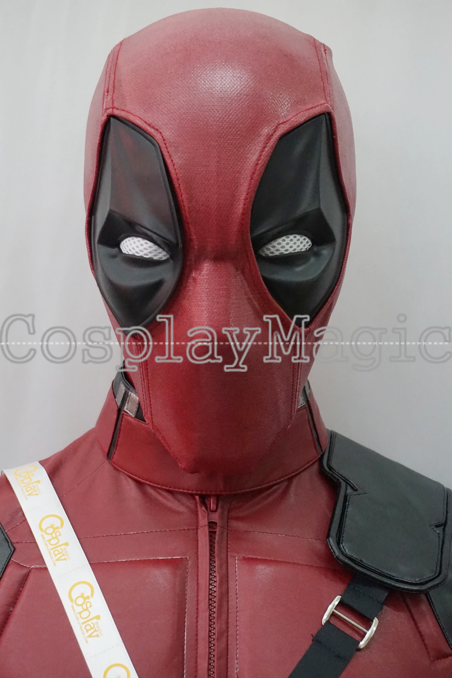 - Red and black faux leather mask
