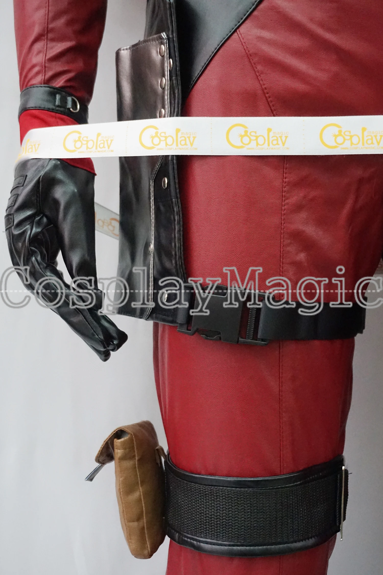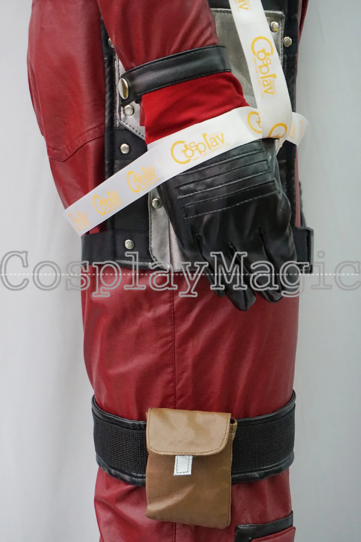 - Black faux leather strap with the weapon holster on the back