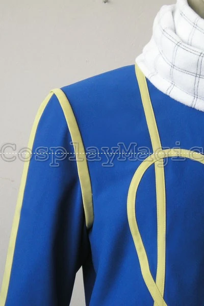 - Blue jacket with yellow trim