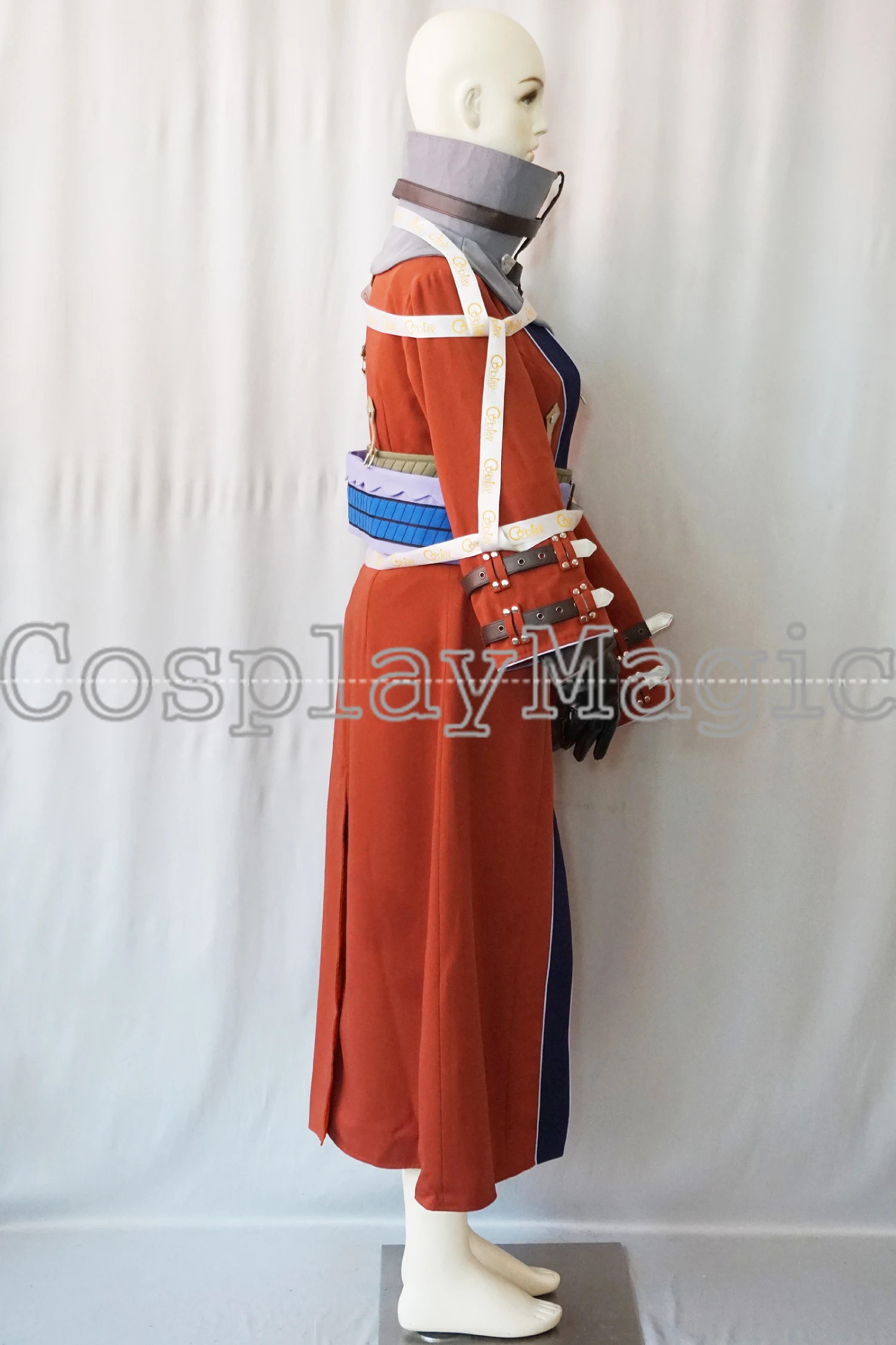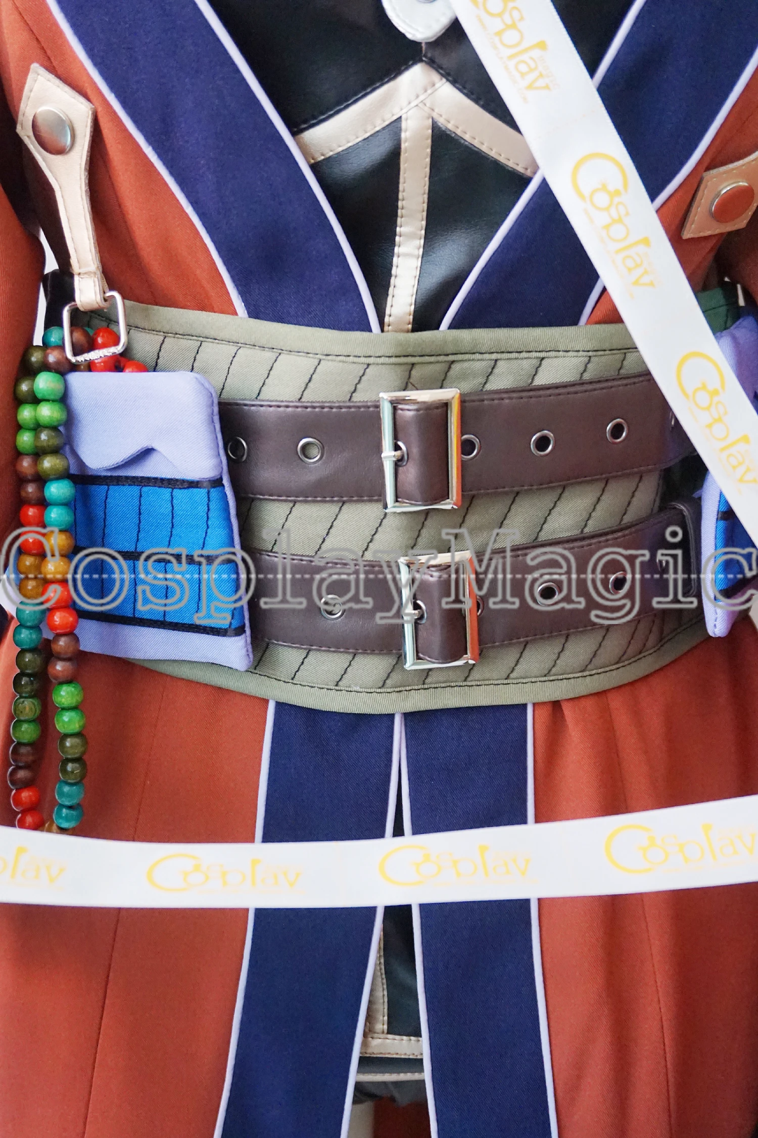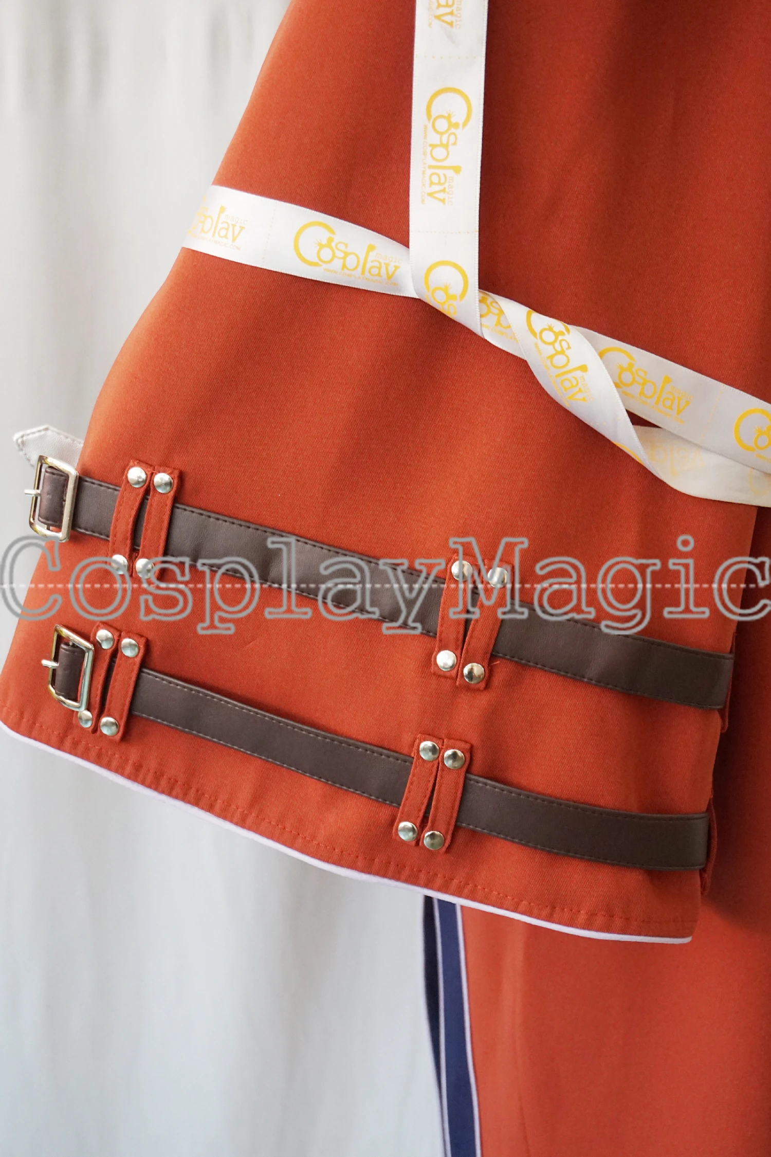 - Red haori with faux leather buckles on sleeves