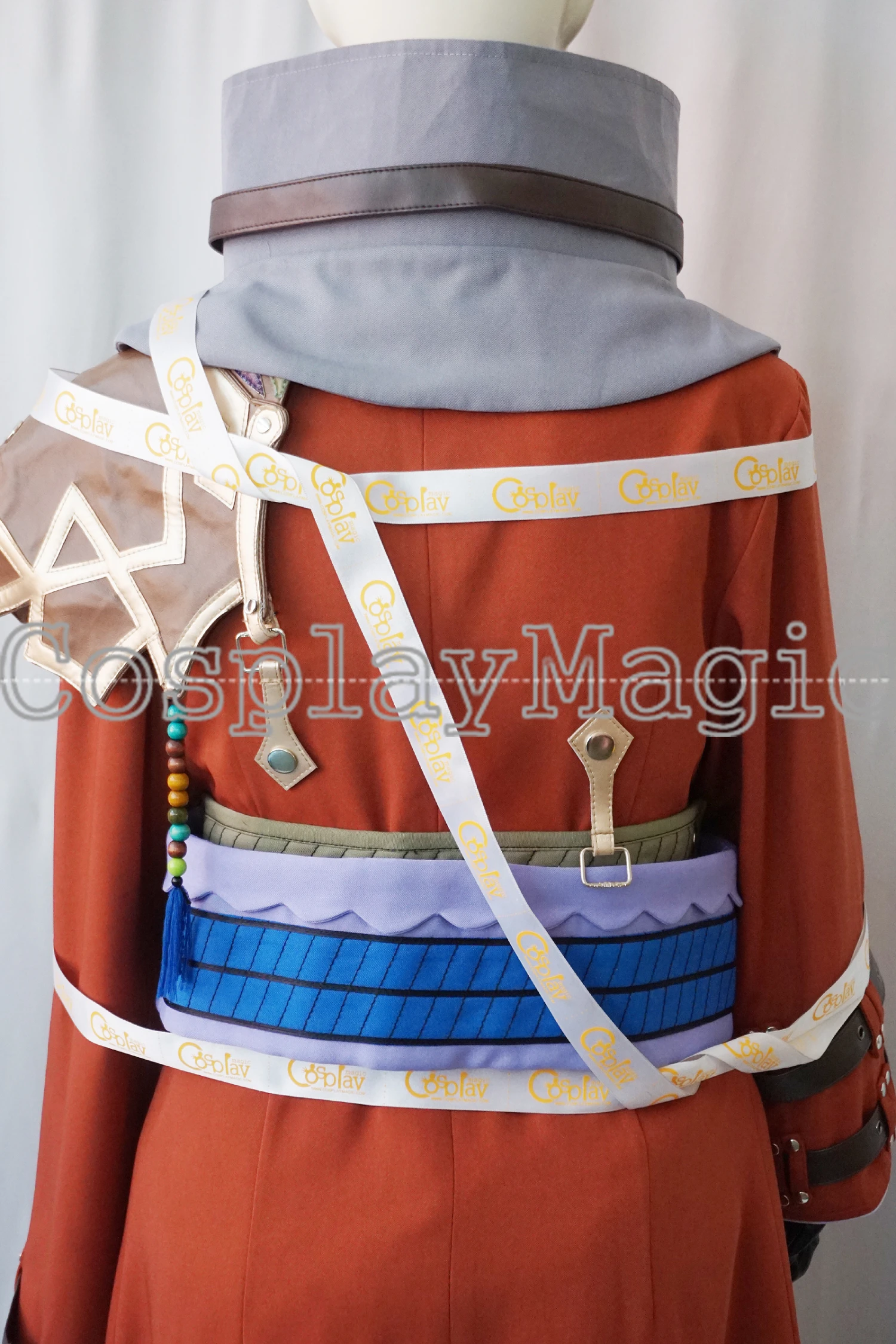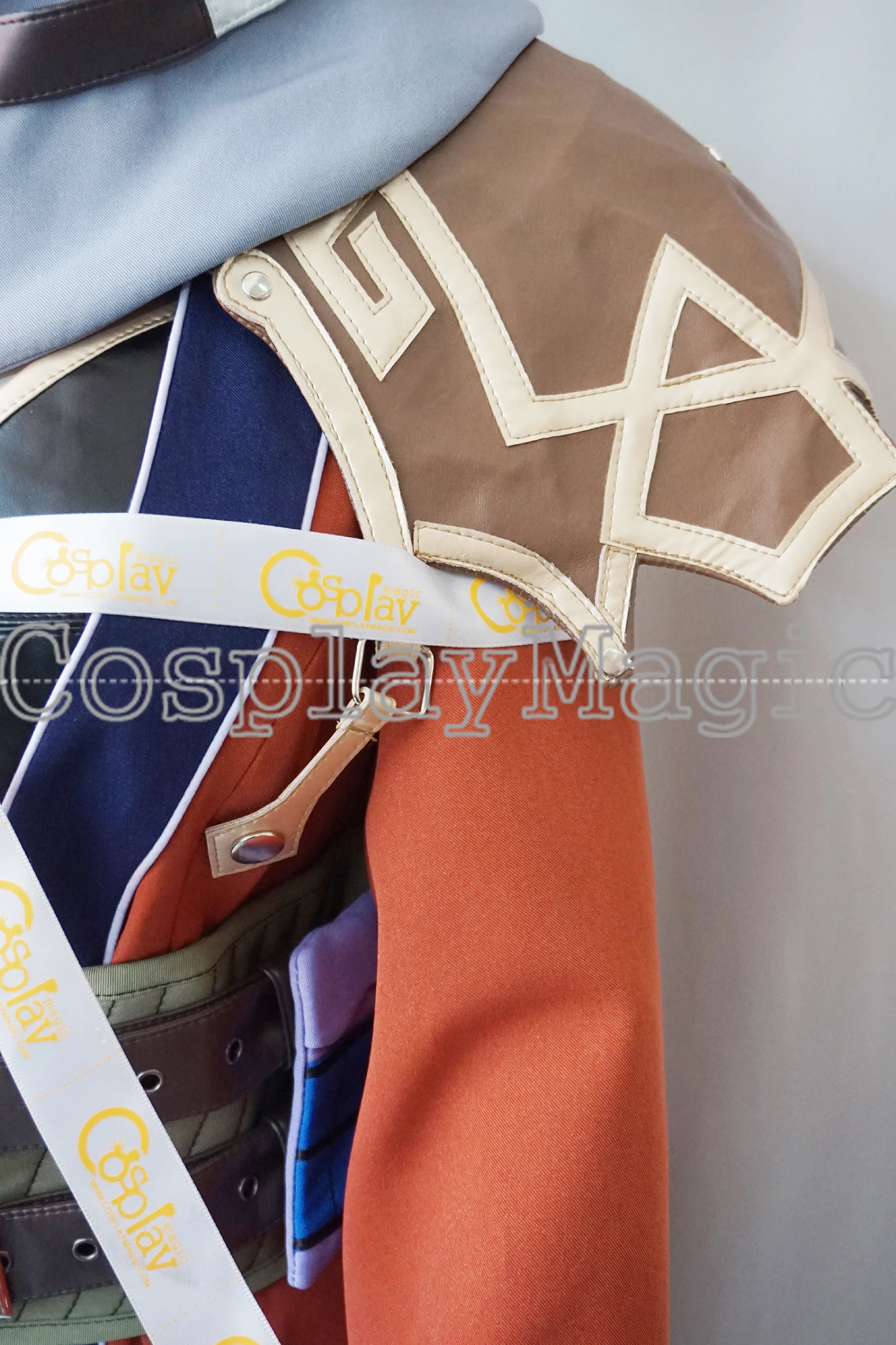 - Brown shoulder pad with a beaded ornament
