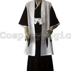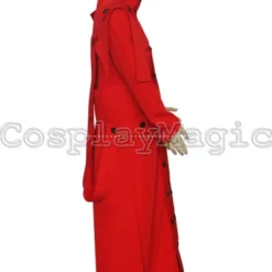 - Matched high-collared cloak with gold faux leather edges