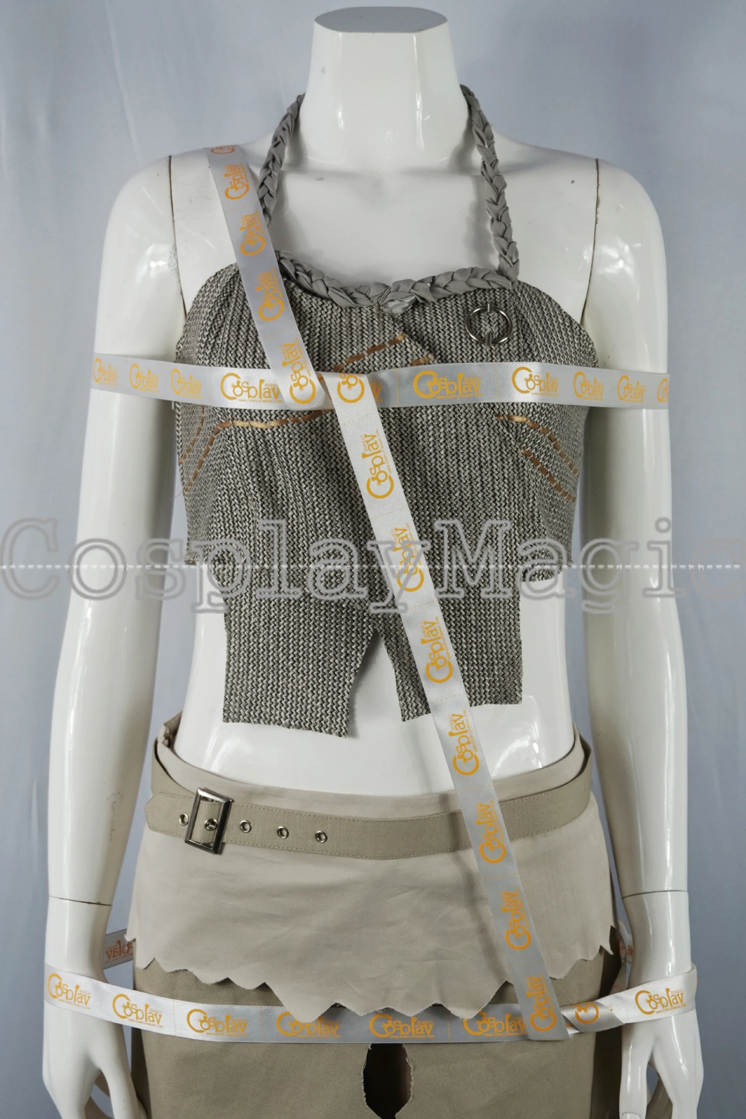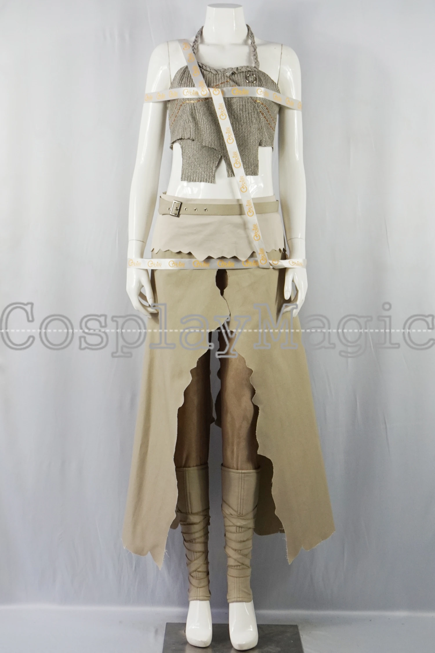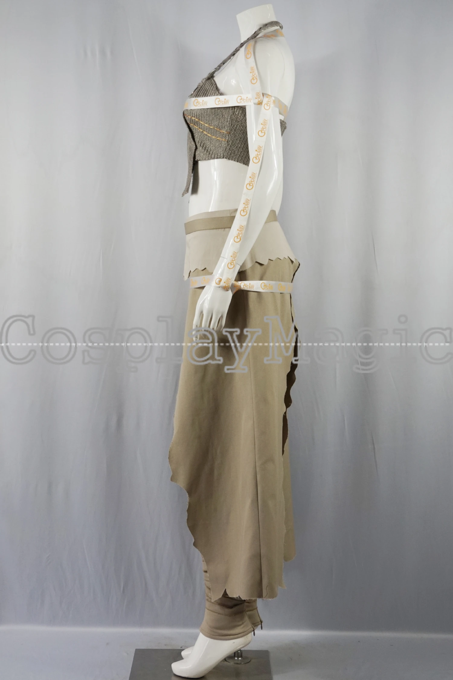 - Brown trousers with clothes around the waist