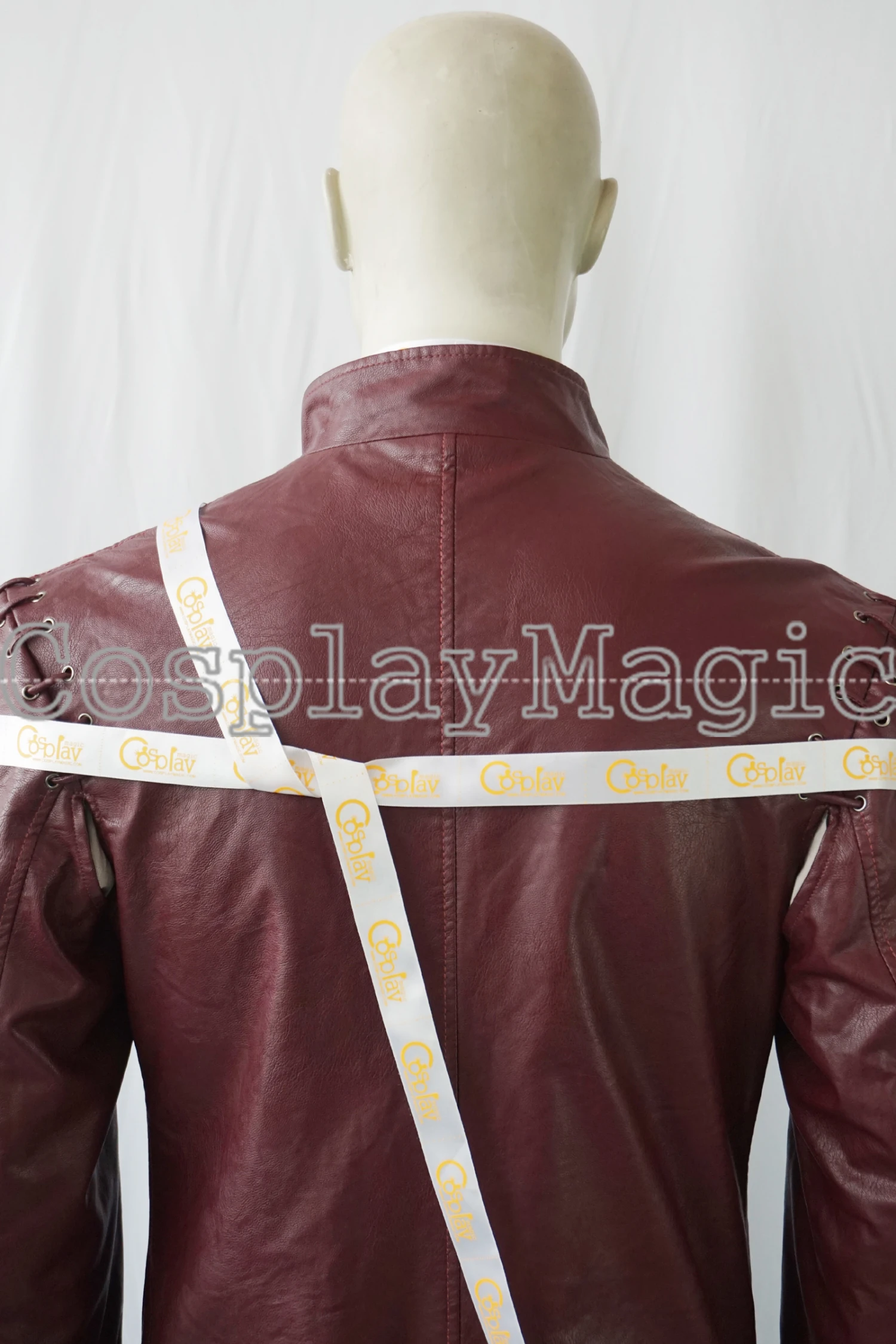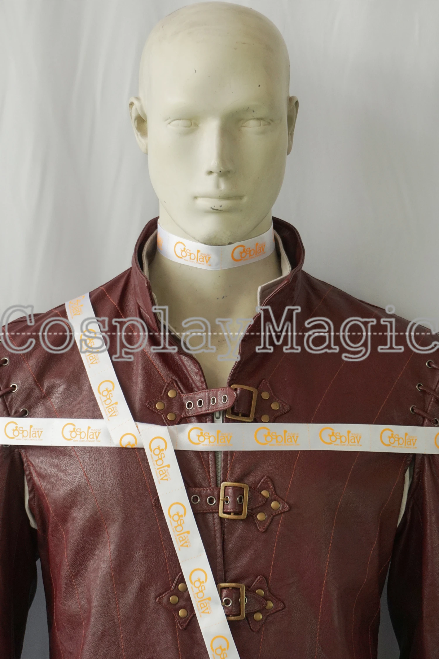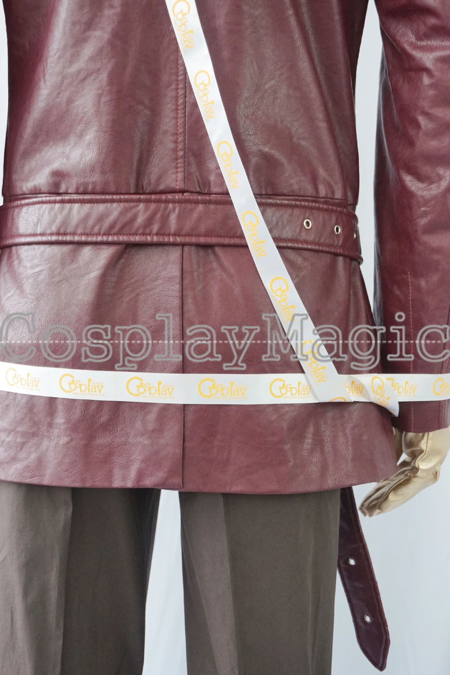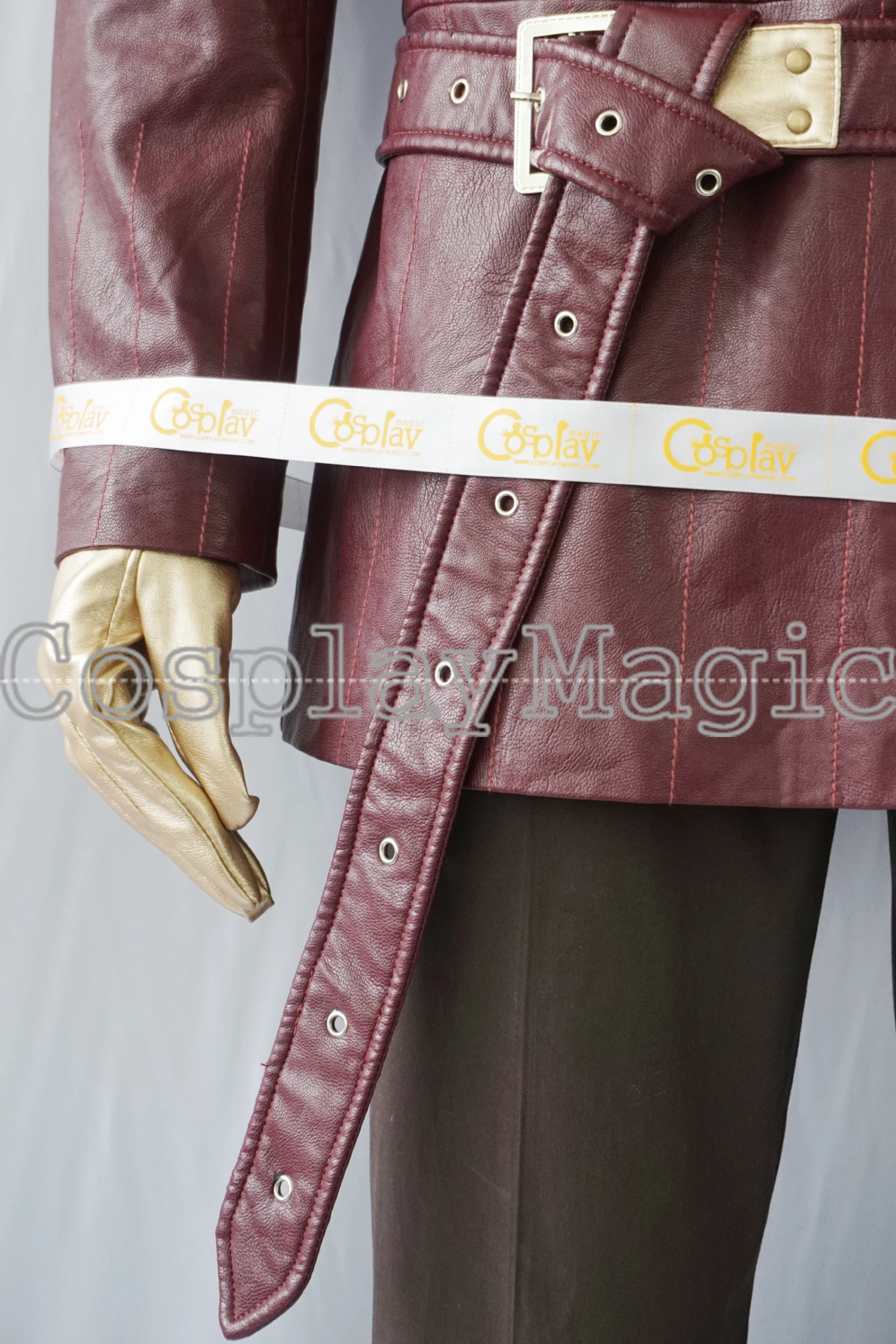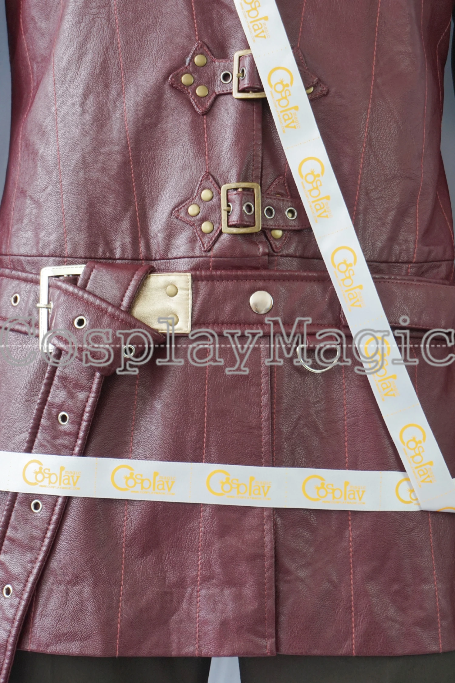 - Red faux leather jacket with belt, Buckles in the front