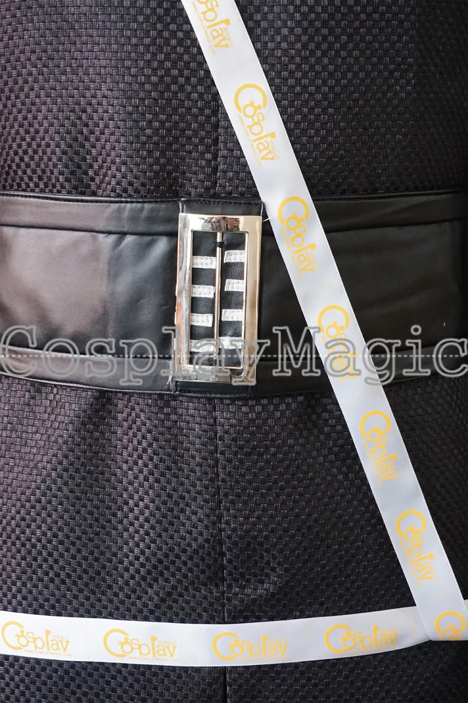 - Black faux leather belt