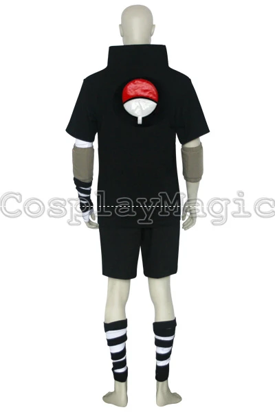 - Black short-sleeved shirt with high collar and the Uchiha crest on the back