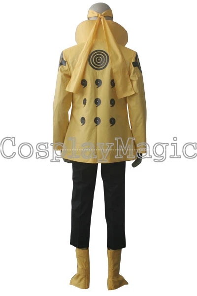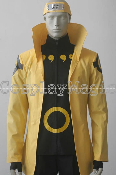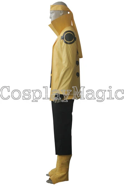 - High-collared yellow coat with Rinnegan and nine magatama on the back