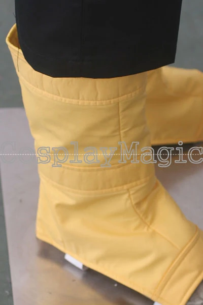 - Black bodysuit with yellow magatama markings around collar and yellow circle in the front