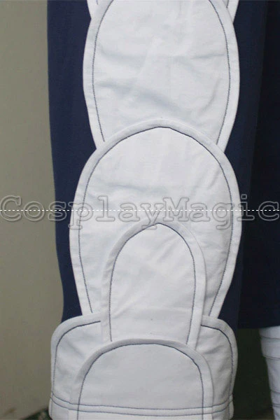 - Blue pants with red belt