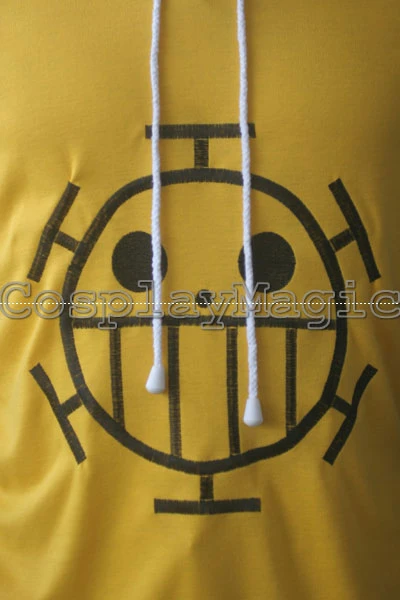 - Black-sleeved and hooded yellow hoodie with Heart Pirates’ Jolly Roger in the front