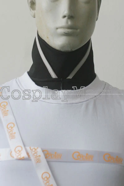 - White vest with black shirt underneath