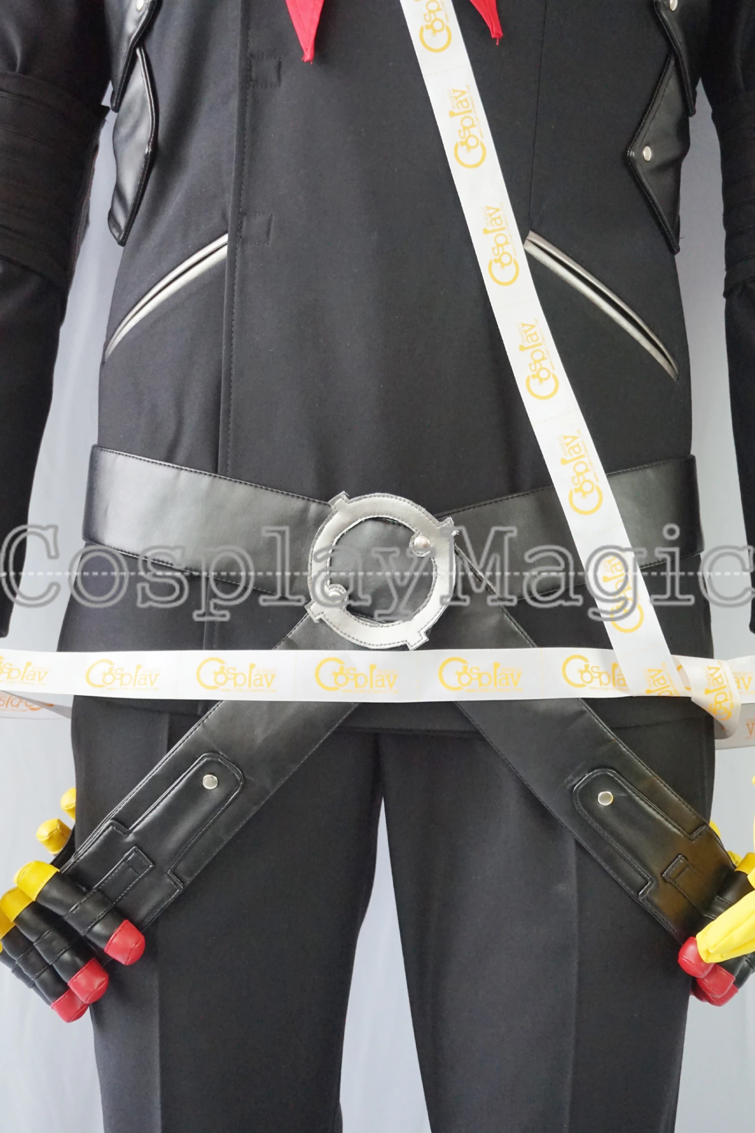 - Black belt with red and yellow ornaments