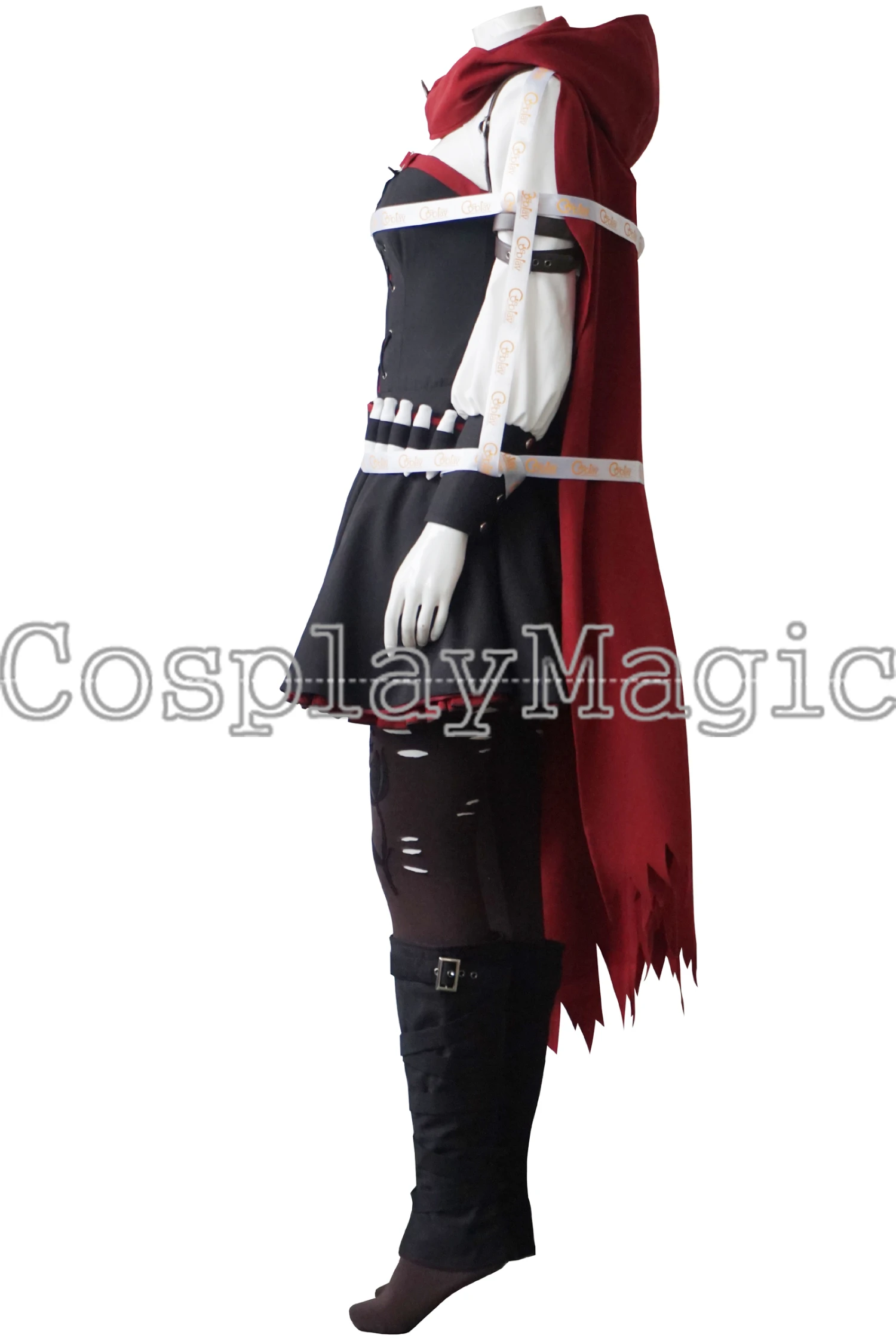 - Red cape with ragged edges