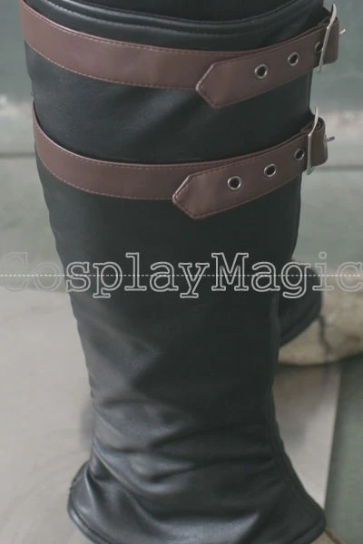 - Black faux leather leg protectors with buckles
