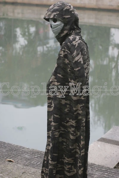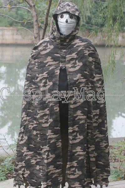- Hooded Camouflage mantle with ragged hem