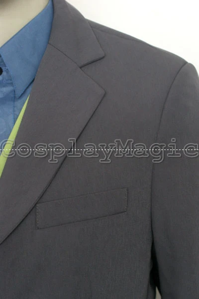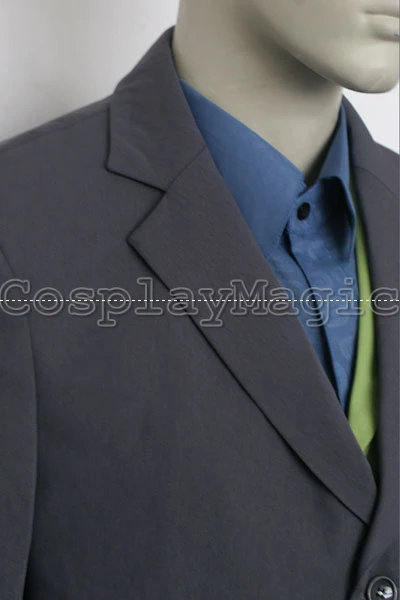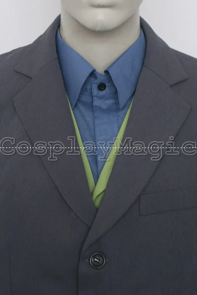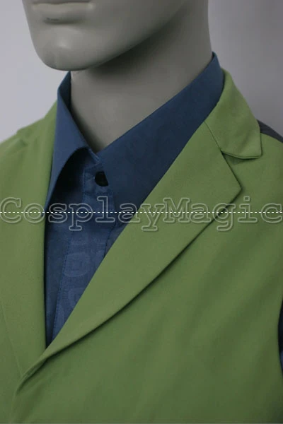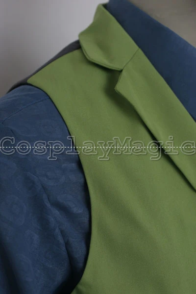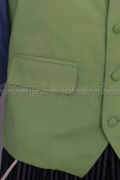 - Green waistcoat with blue shirt underneath