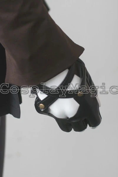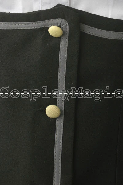 - Black vest with a large gap emphasizing the chest area, 3 yellow buttons in the front