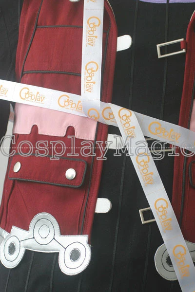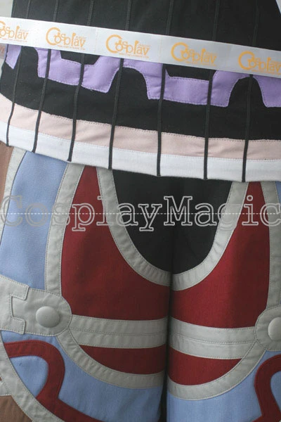 - Black shirt underneath with white, pink and purple ornaments along the collar, cuffs and hem