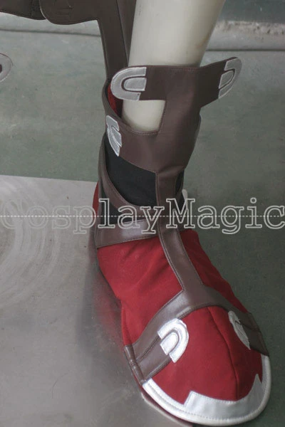 - Red boots cover with brown faux leather stripes